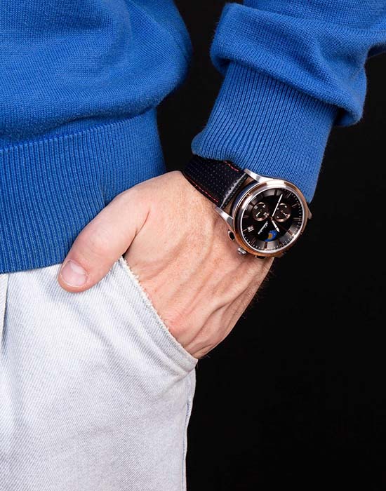 Кварцевые часы работают от батарейки или аккумулятора. Внутри механизма установлен кристалл кварца: под воздействием электричества он колеблется с очень стабильной частотой, а электроника превращает эти колебания в секунды и управляет стрелками. Такие часы ценят за точность и простоту. Средняя погрешность — около ±15 секунд в месяц, поэтому время долго остаётся практически идеальным.