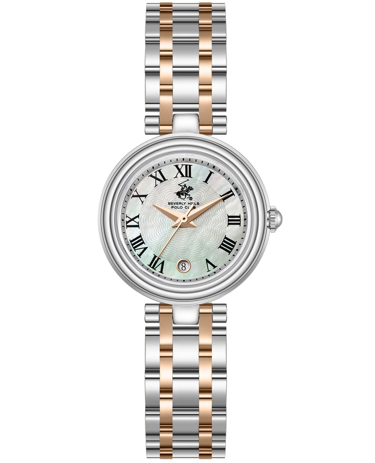 Женские кварцевые часы Beverly Hills Polo Club — это элегантный аксессуар. Корпус диаметром 26 мм выполнен из нержавеющей стали. Циферблат оформлен индексами и стрелками. Окошко даты расположено в положении 6 часов. Циферблат защищён минеральным стекломМинеральное стеклоМинеральное стекло представляет собой искусственно выращенный минерал кварца. Такое стекло отличается особой устойчивостью к повреждениям и царапинам. Уступает по некоторым качествам сапфировому стеклу.. Часы оснащены стальным браслетом с частичным IP-покрытиемIP-покрытиеМетод ионного напыления. Демонстрирует повышенную устойчивость к истиранию, окислению и химическим веществам. Под воздействием высокого давления и температуры около 1500°C молекулы металла надёжно соединяются с частицами корпуса часов. на застёжке «бабочка» с кнопкамиЗастёжка "бабочка"Такой вид застёжки дополняется предохранителями, помогающими избежать случайного раскрытия браслета. Обладают изящным исполнением. . Водонепроницаемость 30 м позволяет использовать часы в повседневных условиях. Идеальный выбор для тех, кто ценит стиль и качество.