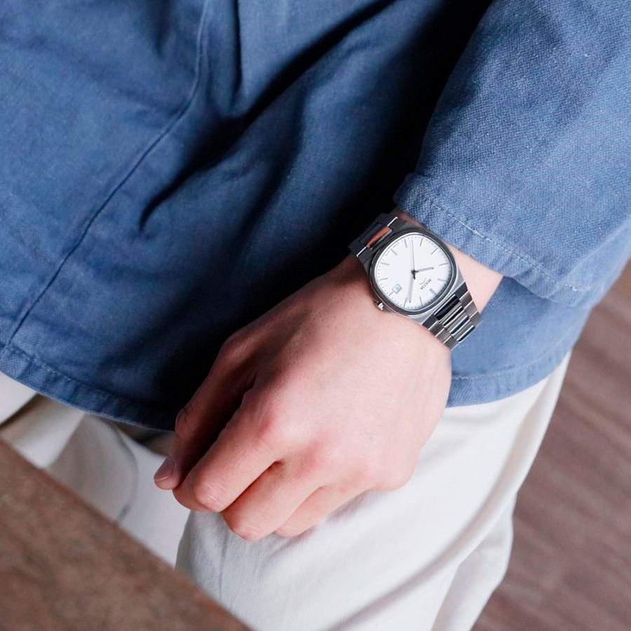 Браслет из титана оснащён раскладной застёжкойРаскладная застёжкаТакой тип застёжки используется только на браслетах из металла. Она никогда не раскрывается полностью, происходит разделение на 2 и более частей. Раскладывающая застёжка снизит вероятность потери часов к минимуму., обеспечивающей удобную фиксацию на запястье. Водонепроницаемость 50 метров (5 ATM) делает модель отличным выбором для повседневного использования и защиты от случайных брызг.
