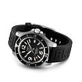 Класс водозащиты: 500 метров, позволит плавать, нырять и заниматься другими водными видами спорта. Корпус часов изготовлен из нержавеющей стали, серебристого цвета. Каучуковый ремешок черного цвета.