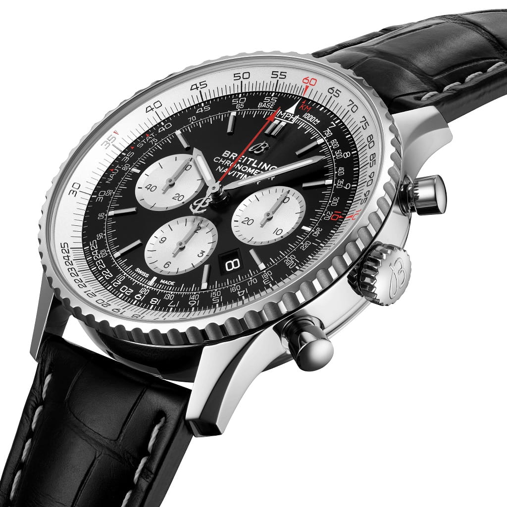 Классический представитель коллекции − модель Navitimer Chronograph 46 AB0127211B1P1 − отличается внушительным размером. Ее оригинальный 46-миллиметровый корпус с круглой логарифмической линейкой и превосходной считываемостью показаний на циферблате будет заметен на любом запястье. Прозрачная задняя крышка корпуса из сапфирового стекла позволяет наблюдать за работой мануфактурного калибра Manufacture Breitling Caliber 01, высококлассного сертифицированного хронографа с автоподзаводом.