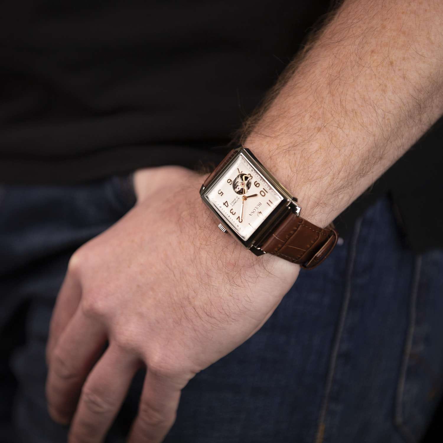 Мужские механические часы-скелетоны с автоподзаводом Bulova Sutton 96A268 – отражающий идеальное сочетание современного дизайна, надёжности и функциональности. Элегантный облик станет превосходным завершением образа, наделив его индивидуальным характером. Корпус из нержавеющей стали серебристого цвета, размером 33х49 мм идеально сбалансирован и элегантен. Минеральное стеклоМинеральное стеклоМинеральное стекло представляет собой искусственно выращенный минерал кварца. Такое стекло отличается особой устойчивостью к повреждениям и царапинам. Уступает по некоторым качествам сапфировому стеклу. защищает циферблат от царапин и устойчивое к мелким механическим повреждениям. Кожаный ремешок на стандартной застёжке обеспечивает комфортное ношение. Водозащита 30 метров позволит защитить корпус от случайных брызг или капель дождя. Прозрачная задняя крышка. Эта модель – отличный выбор для тех, кто ищет сочетание стиля, качества и функциональности. Часы станут не только полезным аксессуаром, но и выразительным элементом вашего имиджа.