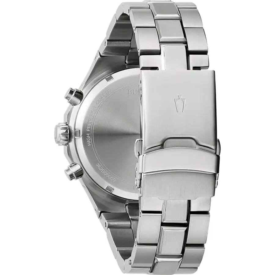Мужские кварцевые часы-хронографХронографФункция позволяет измерять отрезки времени с особой точностью: часы, минуты, секунды. Верным признаком хронографа является наличие на циферблате 3 дополнительных окошек-счётчиков. Bulova Classic 96B408  – отражающий идеальное сочетание современного дизайна, надёжности и функциональности. Элегантный облик станет превосходным завершением образа, наделив его индивидуальным характером. Корпус из нержавеющей стали, диаметром 44 мм идеально сбалансирован и элегантен. Минеральное стеклоМинеральное стеклоМинеральное стекло представляет собой искусственно выращенный минерал кварца. Такое стекло отличается особой устойчивостью к повреждениям и царапинам. Уступает по некоторым качествам сапфировому стеклу. защищает циферблат от царапин и устойчивое к мелким механическим повреждениям. Шкала тахиметраТахиметрРазмеченная шкала, располагается на ободке или безеле часов. Тахиметр позволяет рассчитать скорость на определённом участке пути, расстояние измеряется в километрах или милях. на циферблате. Стальной браслет на раскладной застёжкеРаскладная застёжкаТакой тип застёжки используется только на браслетах из металла. Она никогда не раскрывается полностью, происходит разделение на 2 и более частей. Раскладывающая застёжка снизит вероятность потери часов к минимуму. обеспечивает комфортное ношение. Стрелки и метки с люминесцентным покрытиемЛюминесцентное покрытиеПозволяет считывать показания времени в темноте. Производители наносят на стрелки, часовые индексы, безель или поверхность циферблата светонакопительный состав, дающий холодное свечение. позволяющие легко определять время даже в темноте. Водозащита 100 метров, позволит плавать, нырять и заниматься другими водными видами спорта. Окошко даты находится в положении между 4 и 5 часов. Эта модель – отличный выбор для тех, кто ищет сочетание стиля, качества и функциональности. Часы станут не только полезным аксессуаром, но и выразительным элементом вашего имиджа.