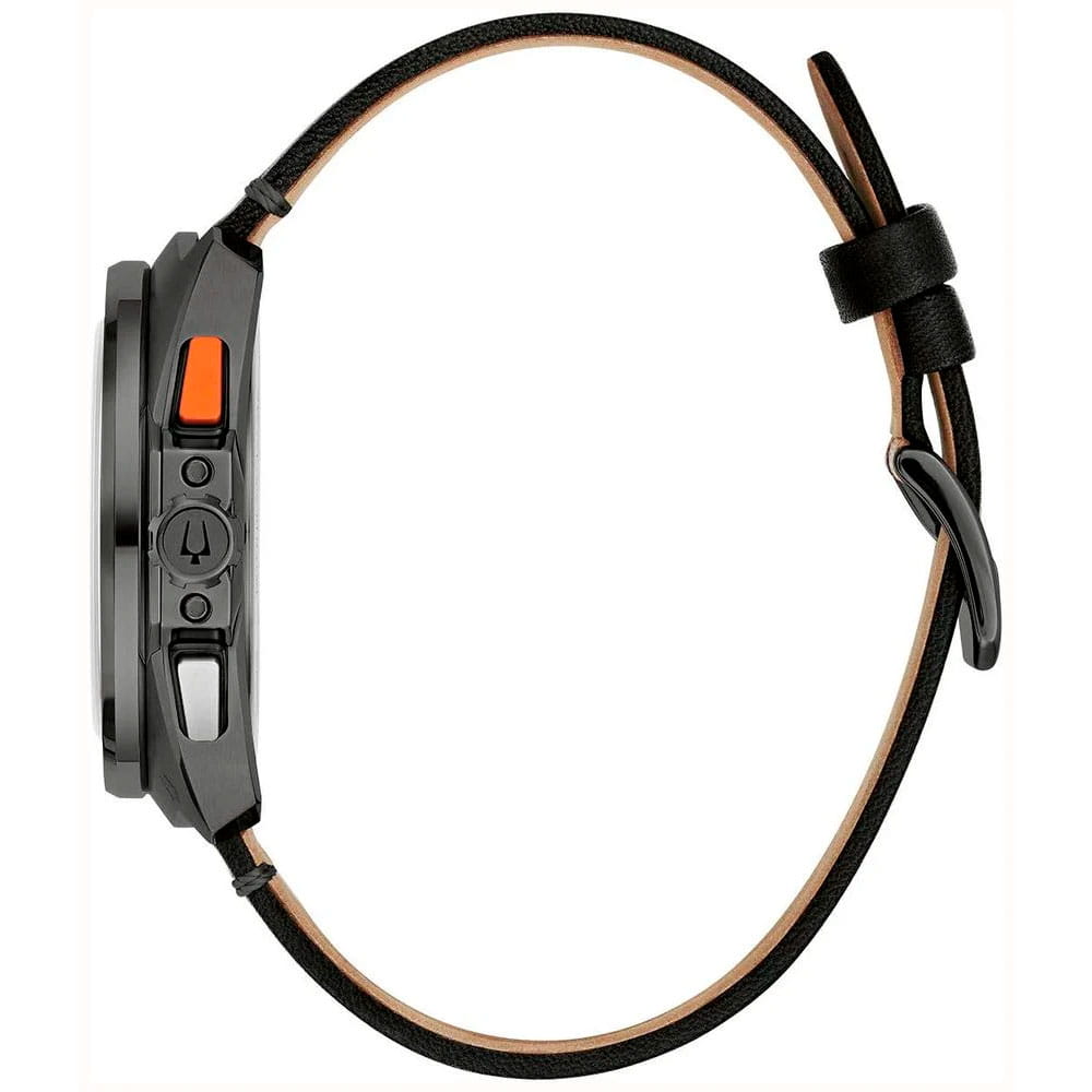 Мужские кварцевые часы-хронографХронографФункция позволяет измерять отрезки времени с особой точностью: часы, минуты, секунды. Верным признаком хронографа является наличие на циферблате 3 дополнительных окошек-счётчиков. с секундомеромСекундомерСекундоме́р — прибор, способный измерять интервалы времени с точностью до долей секунды. Bulova Racer Chronograph 98B428 – отражающий идеальное сочетание современного дизайна, надёжности и функциональности. Элегантный облик станет превосходным завершением образа, наделив его индивидуальным характером. Корпус из нержавеющей стали с PVD-покрытиемPVDУльтратонкое покрытие наносится в технике вакуумного напыления, сочетает в себе нитрид титана особой прочности со слоем золота или оксида хрома. Несёт в себе декоративную или защитную функцию. черного цвета, диаметром 42 мм идеально сбалансирован и элегантен. Сапфировое стеклоСапфировое стеклоПрочный и надёжный материал из кристалла сапфира синтетического происхождения, характеризующийся особой твёрдостью и устойчивостью к царапинам и повреждениям. защищает циферблат от царапин и устойчивое к механическим повреждениям. Апертура даты в позиции 6 часов. 12/24х часовой формат времени. Кожаный ремешок на стандартной застёжке обеспечивает комфортное ношение. Шкала тахиметраТахиметрРазмеченная шкала, располагается на ободке или безеле часов. Тахиметр позволяет рассчитать скорость на определённом участке пути, расстояние измеряется в километрах или милях. на безелеБезельВнешний ободок, закрепляющий стекло. В спортивных часах так называется поворотное кольцо с делениями на циферблате, выполняет роль таймера – замеряет отрезки времени на шкале. Неподвижный безель – элемент декора. Однонаправленно вращающийся безель на дайверских часах позволяет фиксировать моменты погружения и выныривания на поверхность.. Водозащита 100 метров позволит плавать, нырять и заниматься другими водными видами спорта. Стрелки и метки с люминесцентным покрытиемЛюминесцентное покрытиеПозволяет считывать показания времени в темноте. Производители наносят на стрелки, часовые индексы, безель или поверхность циферблата светонакопительный состав, дающий холодное свечение. позволяющие легко определять время даже в темноте. Эта модель – отличный выбор для тех, кто ищет сочетание стиля, качества и функциональности. Часы станут не только полезным аксессуаром, но и выразительным элементом вашего имиджа.