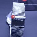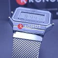 Серебристая цветовая гамма подойдёт к любой одежде, предоставляя простор для экспериментов. Цифровой дисплей оснащён функцией подсветки, облегчающей считывание информации в темноте. Среди дополнительных возможностей числятся будильник, календарь, секундомер. Ударопрочный корпус сделан из полимерного пластика. Стильный браслет миланского плетения. Минеральное стекло отличается устойчивостью к появлению царапин. Габариты: 38,6 x 36,3 x 9,6 мм.