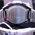 Японские спортивные наручные кварцевые мужские часы с пятью будильниками. ЖК циферблат серого цвета.  Корпус - Пластиковый; Стекло - Минеральное; Водозащита - 100 м. (WR 100); Материал ремешка - Нержавеющая сталь; Цвет ремешка - Серебристый; Цвет циферблата - Lcd.