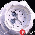 Аксессуар по достоинству оценят модницы, придерживающиеся активного образа жизни. Белый циферблат украшают металлические стразы, используемые вместо часовых индексов.Ударопрочный корпусУдаропрочный корпусМеханизм заключён в корпус, выполненный из современных материалов, устойчивых к ударам, механическим повреждениям и падению с высоты: инновационный пластик, карбон, нержавеющая сталь, титан. защищает японский кварцевый калибр, получающий энергию от батарейки. Срок её службы рассчитан на 2 года. Для подсветки используется LED-светодиодСветодиодная подсветкаСветодиодная или LED-подсветка обеспечивает появление яркого холодного свечения за счёт LED-элементов - маленьких лампочек. Они потребляют минимальное количество энергии, чаще всего можно встретить 1 светодиод, в нижней части циферблата.. Закаленное минеральное стекло.Водонепроницаемость до 10 бар. Гибкий, надёжный полимерный браслет. Ежечасный сигнал. Стрелки с покрытием NeobriteПодсветка NeobriteИспользование светонакопительных составов на основе сульфида цинка или алюмината стронция, яркий свет можно наблюдать на протяжении 6-10 часов после «зарядки» часов около источника света.. хронографХронографФункция позволяет измерять отрезки времени с особой точностью: часы, минуты, секунды. Верным признаком хронографа является наличие на циферблате 3 дополнительных окошек-счётчиков., таймер с автоповтором, UTCUTCВсемирное кординационное время, не имеющее привязки к географическому положению Гринвича, основывается на атомном отсчёте времени. Регулировка времени осуществляется более точно, чем устаревшее GMT.