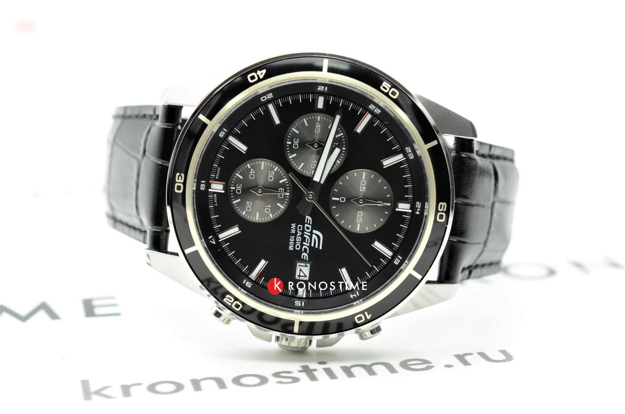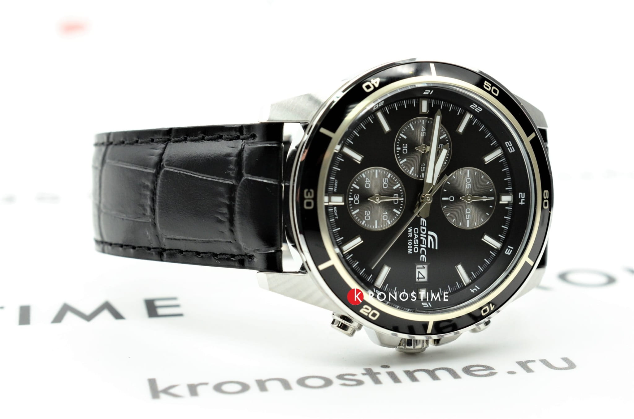 Японские мужские часы из коллекции Edifice являются стильным аксессуаром на каждый день, подходят для дополнения спортивного или повседневного стиля в одежде. Модель отличается лаконичностью благодаря использованию сдержанной цветовой гаммой, красиво сочетается чёрный циферблат с счётчиками хронографаХронографФункция позволяет измерять отрезки времени с особой точностью: часы, минуты, секунды. Верным признаком хронографа является наличие на циферблате 3 дополнительных окошек-счётчиков. и чёрный ремешок из натуральной кожи, поверхность которого сделана под кожу крокодила. Ударопрочный корпусУдаропрочный корпусМеханизм заключён в корпус, выполненный из современных материалов, устойчивых к ударам, механическим повреждениям и падению с высоты: инновационный пластик, карбон, нержавеющая сталь, титан. из нержавеющей стали 316L защищает кварцевый механизм с высокой точностью хода. Люминесцентная подсветкаЛюминесцентное покрытиеПозволяет считывать показания времени в темноте. Производители наносят на стрелки, часовые индексы, безель или поверхность циферблата светонакопительный состав, дающий холодное свечение.. Закалённое минеральное стекло. Водонепроницаемость до 10 бар. Секундомер, окошко даты. Габариты: 43,8 x 48,5 x 11,6 мм.