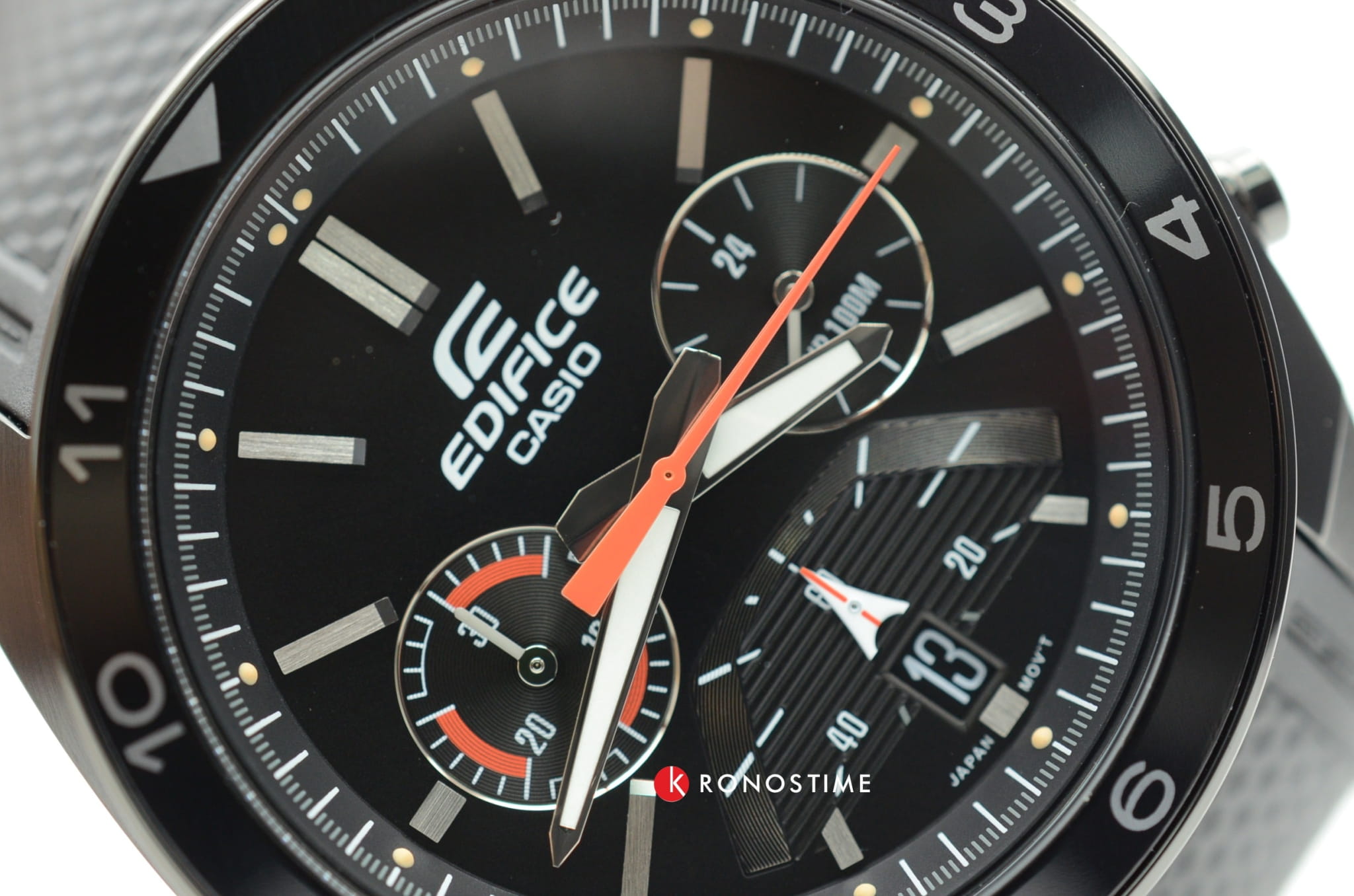 Модель из коллекции Edifice представляет собой стильный спортивный хронографХронографФункция позволяет измерять отрезки времени с особой точностью: часы, минуты, секунды. Верным признаком хронографа является наличие на циферблате 3 дополнительных окошек-счётчиков., который станет идеальным дополнением к деловому, спортивному, повседневному стилю.