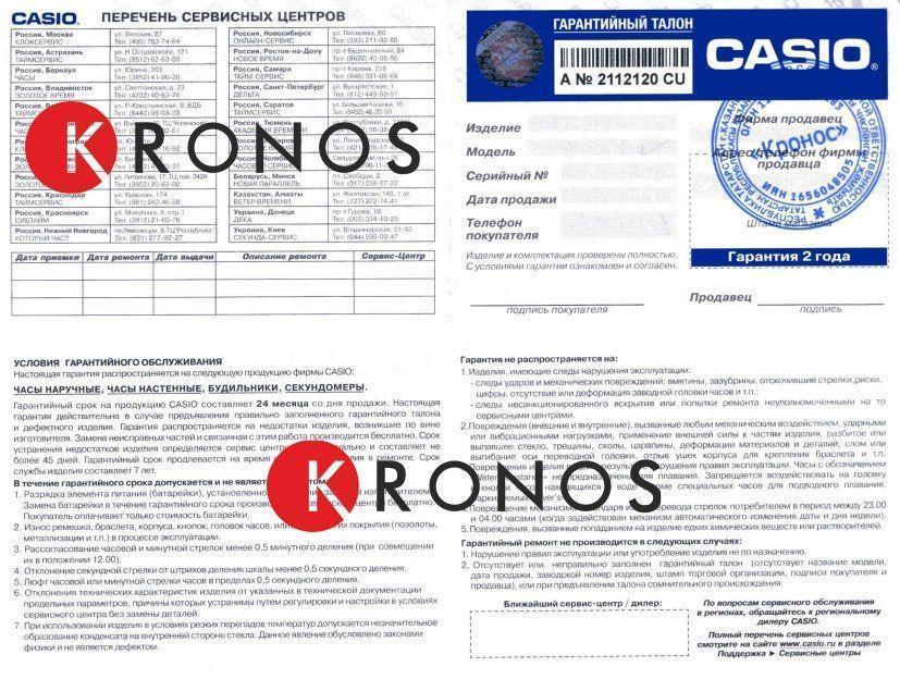 Магазин KronosTime является официальным дилером Casio в России. Это означает, что товар только оригинальный, на него действует официальная гарантия, дающая право обслуживать часы в официальных сервисных центрах.