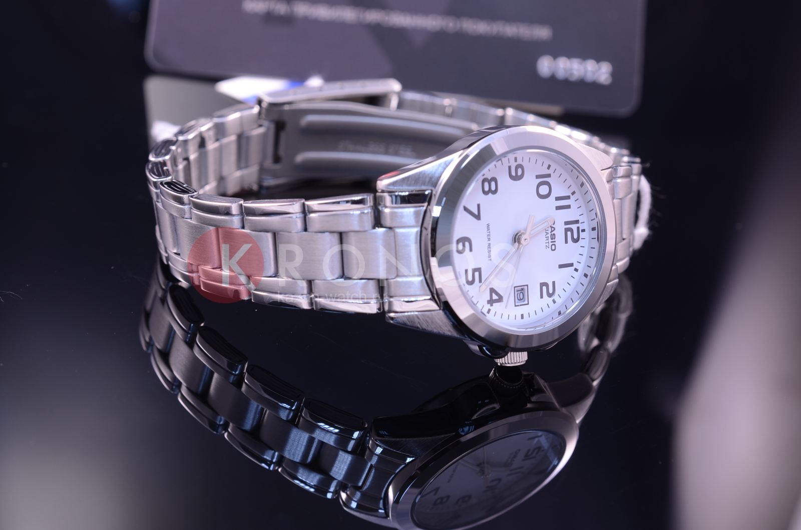 Преимуществами данной модели являются ее сдержанный дизайн и практичность. В качестве полезной функции на циферблате помимо времени показывается и текущая дата. Гладкий и гибкий серебристый браслет сделан из нержавеющей стали. Временны отметки представляют собой арабские цифры, которые расположены на круглом, белом циферблате. Часы оснащены неоновой подсветкой, которая приходит в действие после непродолжительной выдержи на свету. Вес аксессуара составляет 56 грамм.