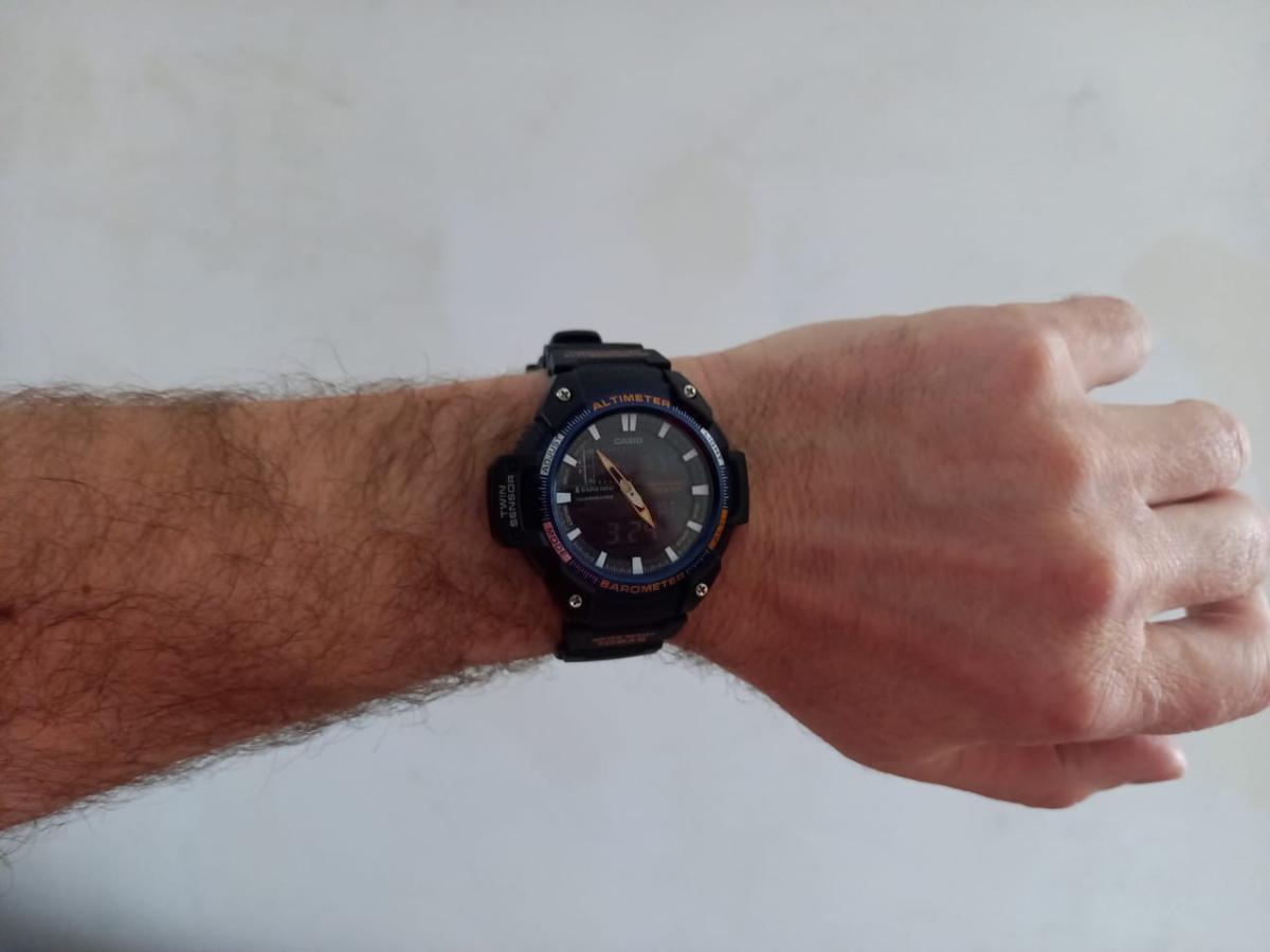 Спортивные мужские многофункциональные часы с аналогово-цифровым циферблатом черного цвета. Пластиковый корпус с алюминиевым безелем крепится на руке ремешком, изготовленным из пластика в черном цвете. Часы Casio SGW-450H-2B оснащены электролюминесцентной подсветкой на весь экран, высотомером, барометром, термометром и такими базовыми функциями, как секундомер, таймер и будильник. Корпус - Пластиковый; Стекло - Минеральное; Водозащита - 100 м. (WR 100); Материал ремешка - Пластиковый; Цвет ремешка - Черный; Цвет циферблата - Lcd.