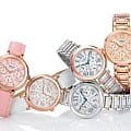 Стильные женские наручные часы, выполненные в fashion стиле. Кварцевые часы с элементом питания SR920SW. Корпус и браслет часов выполнены из высокопрочной стали с частичным IP покрытием. Контрастные синие индексы и стрелки, циферблат украшен кристаллами Swarovski. Водонепроницаемость часов 50 метров, минеральное стекло, устойчивое к царапинам.