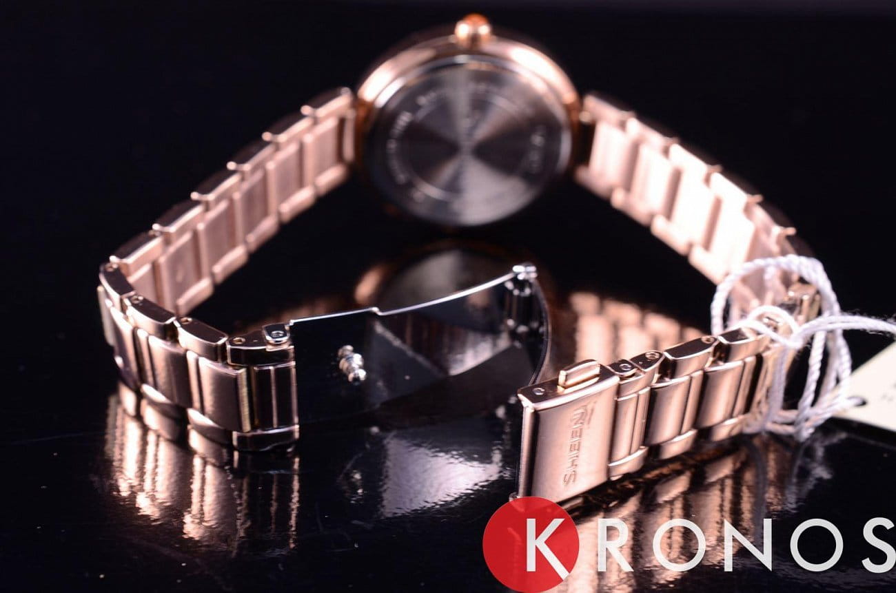 Современные женские кварцевые наручные часы. Круглый корпус и браслет часов выполнены из стали с IP покрытием. Циферблат украшен кристаллами Swarovski и золотыми стрелками. Водонепроницаемость часов до 50 метров, минеральное стекло, устойчивое к царапинам.
