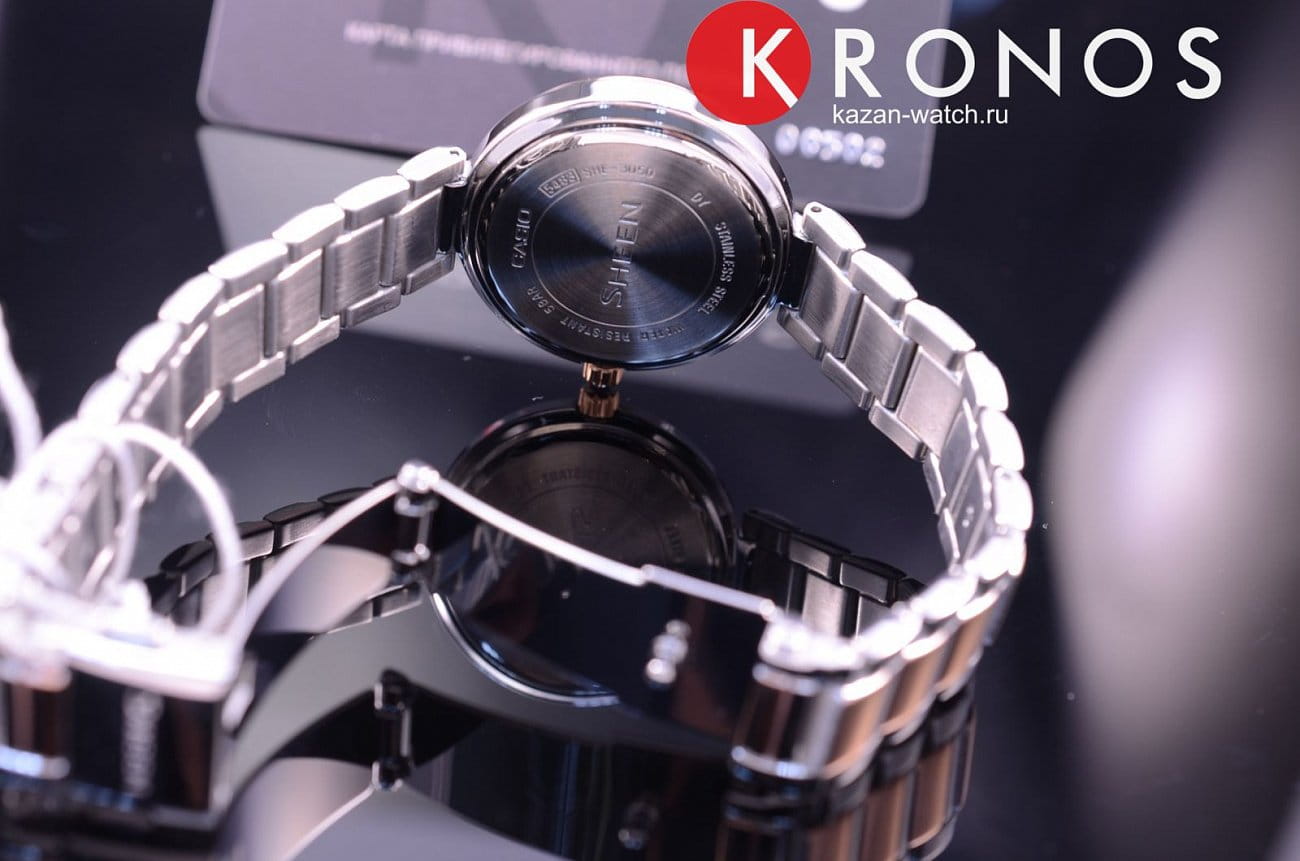 Стильные японские женские часы. Корпус и браслет выполнены из нержавеющей стали. Водозащита 50м. Циферблат украшен кристаллами Swarovski.