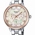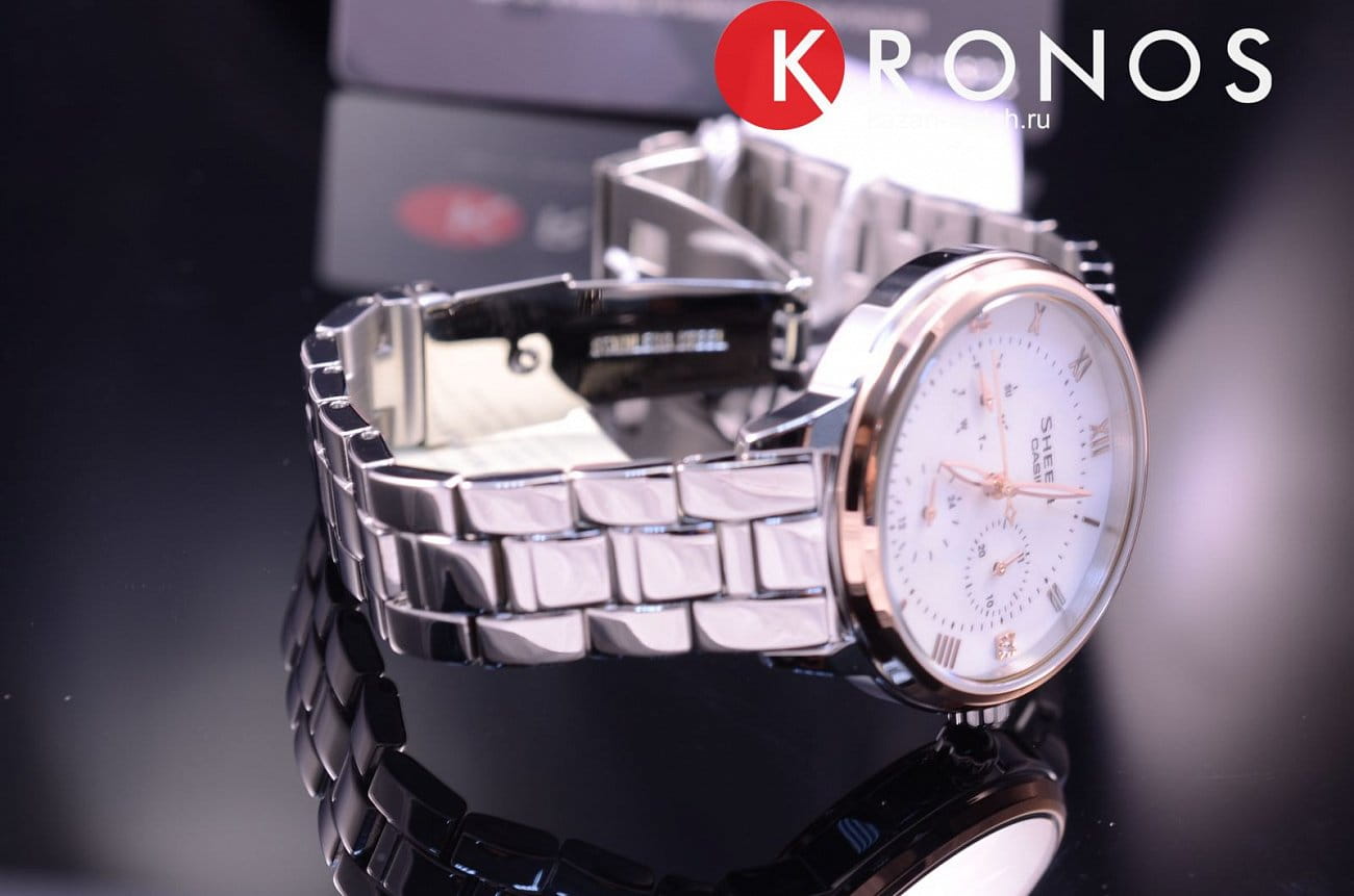 Стильные наручные кварцевые женские часы. Перламутровый циферблат с позолоченными римскими цифрами. Корпус и браслет часов выполнены из нержавеющей стали, безель корпуса с IP покрытием. Минеральное стекло устойчиво к появлению царапин. Водонепроницаемость 50М. Часы оснащены люминесцентной подсветкой стрелок