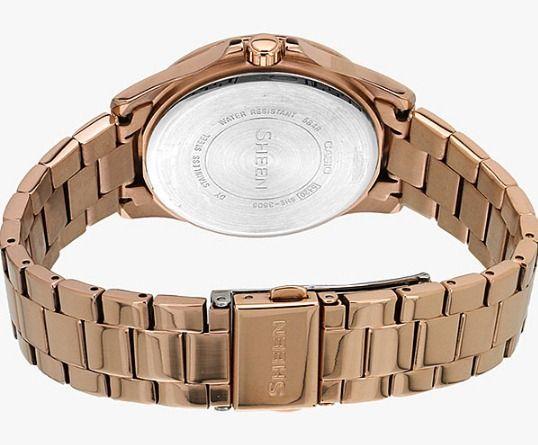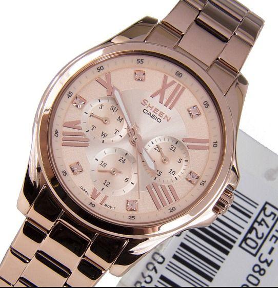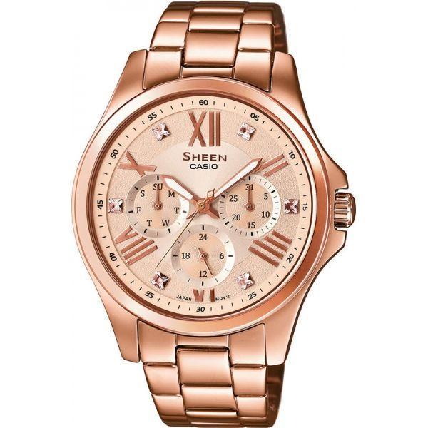 Современные женские наручные часы, выполненные в fashion стиле. Кварцевые часы с элементом питания SR920SW. Корпус и браслет часов SHE-3806PG-9A выполнены из высокопрочной стали с полным IP покрытием цвета розового золота. Водонепроницаемость часов 50 метров, минеральное стекло. Украшены часы вставками из кристаллов Swarovski квадратной формы. Эти часы привлекут всеобщее внимание.