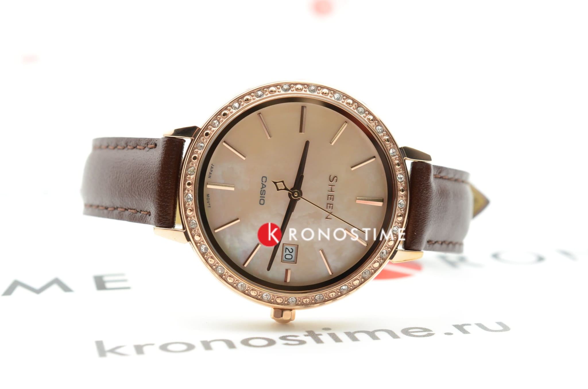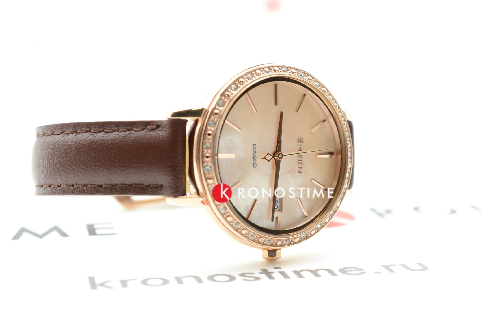 Привлекательный экстерьер - это далеко не единственное преимущество Casio Sheen Часы могут отображать время, они способны погружаться в воду на глубину до 50 метров, а стильный циферблат, украшенный камнями от Swarovski, надежно укреплен минеральным стеклом, защищающим часы от практических любых механических повреждений