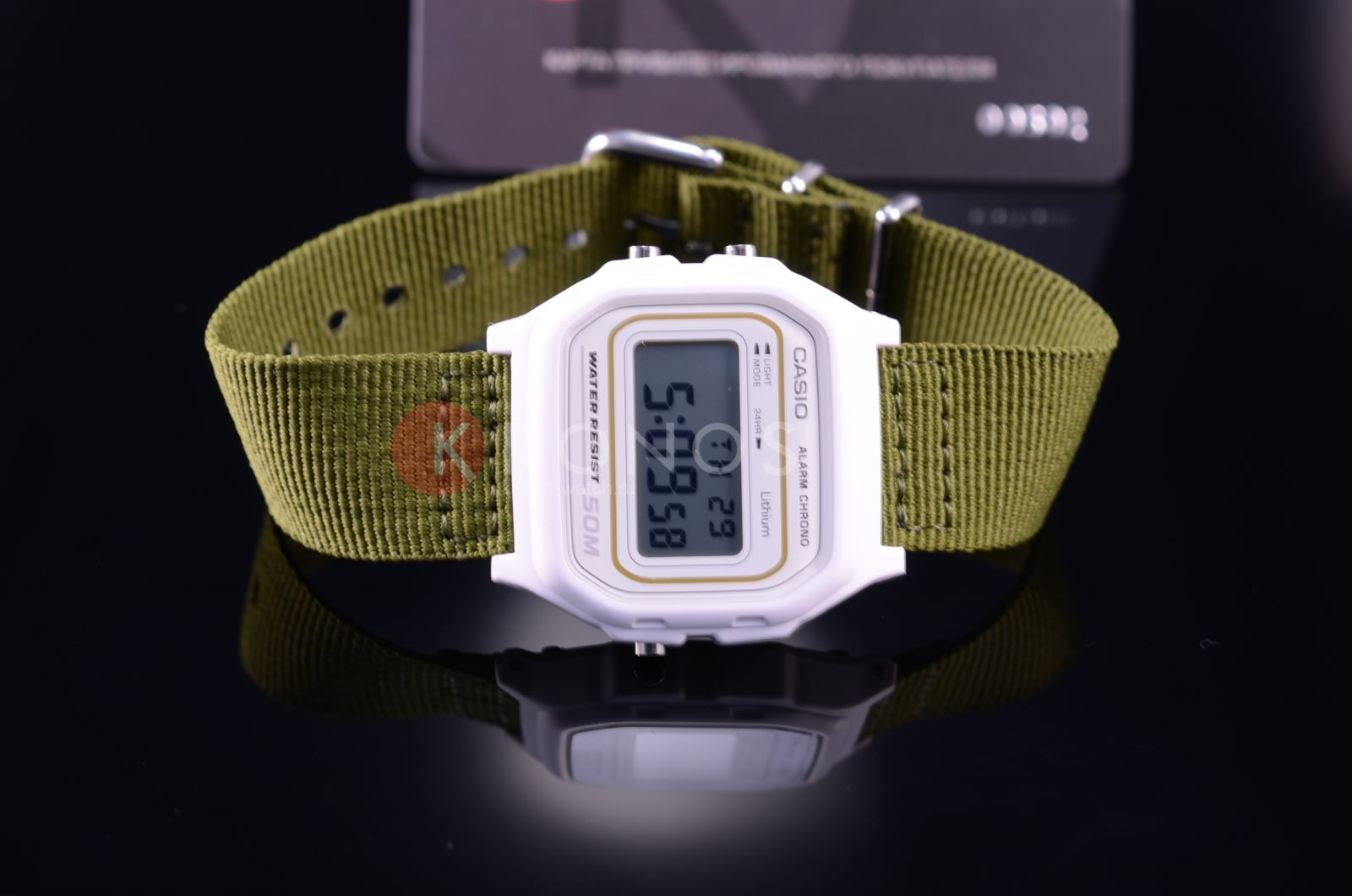 Аккуратный прямоугольный циферблат подсвечивается сбоку микроподсветкой. Секундомер измерят прошедшее время с точностью в 1/100 секунды. Легкий ремешок из нейлона будет красиво обрамлять запястье. Цифровой способ отображения времени. Долговечная батарейка служит 10 лет.