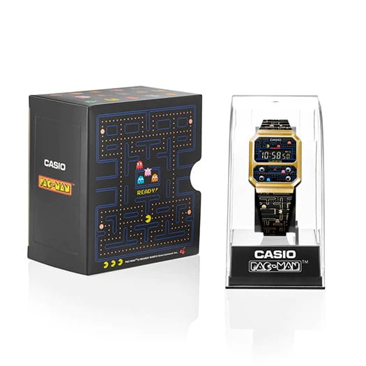 Японские мужские часы с кнопками на лицевом дисплее Casio Vintage Pac Man Limited Edition A100WEPC-1B, электронный механизм с высокой точностью. Класс водозащиты: 30 метров, позволит защитить корпус от случайных брызг или капель дождя. Корпус часов изготовлен из пластика, цвета.