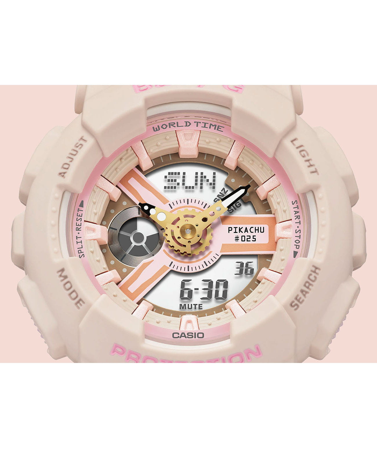 Модель пригодится для летних прогулок и вечеринок, стильно смотрится принт в виде Пикачу. С ним вы точно не останетесь незамеченной. Аксессуар наделит гардероб свежестью и яркостью, привлечёт к вам внимание окружающих. Наручные часы имеют противоударный корпусУдаропрочный корпусМеханизм заключён в корпус, выполненный из современных материалов, устойчивых к ударам, механическим повреждениям и падению с высоты: инновационный пластик, карбон, нержавеющая сталь, титан. из полимерного материала, что позволяет им быть устойчивыми к повреждениям, вибрации, падению с высоты. Японский кварцевый механизм работает от батарейки с 2-летним сроком службы, он позволяет измерять время с точностью хода +/- 30 секунд в месяц. Для защиты циферблата со светодиодной подсветкойСветодиодная подсветкаСветодиодная или LED-подсветка обеспечивает появление яркого холодного свечения за счёт LED-элементов - маленьких лампочек. Они потребляют минимальное количество энергии, чаще всего можно встретить 1 светодиод, в нижней части циферблата. используется минеральное стекло, устойчивое к образованию царапин. Водостойкость 10 бар позволяет не снимать аксессуар во время плавания. Полимерный ремешок отличается мягкостью и гибкостью. Возможности: включение и выключение звука кнопок, таймер обратного отсчёта, хронографХронографФункция позволяет измерять отрезки времени с особой точностью: часы, минуты, секунды. Верным признаком хронографа является наличие на циферблате 3 дополнительных окошек-счётчиков., секундомер, ежечасный сигнал, 5 будильников, вечный календарьВечный календарьКлассическое часовое усложнение, представляющее собой календарь, рассчитанный на несколько лет вперёд (стандартно – до 2099 года). Определяет текущую дату, день недели, месяц.. Габариты: 46,3 x 43,4 x 15,8 мм.