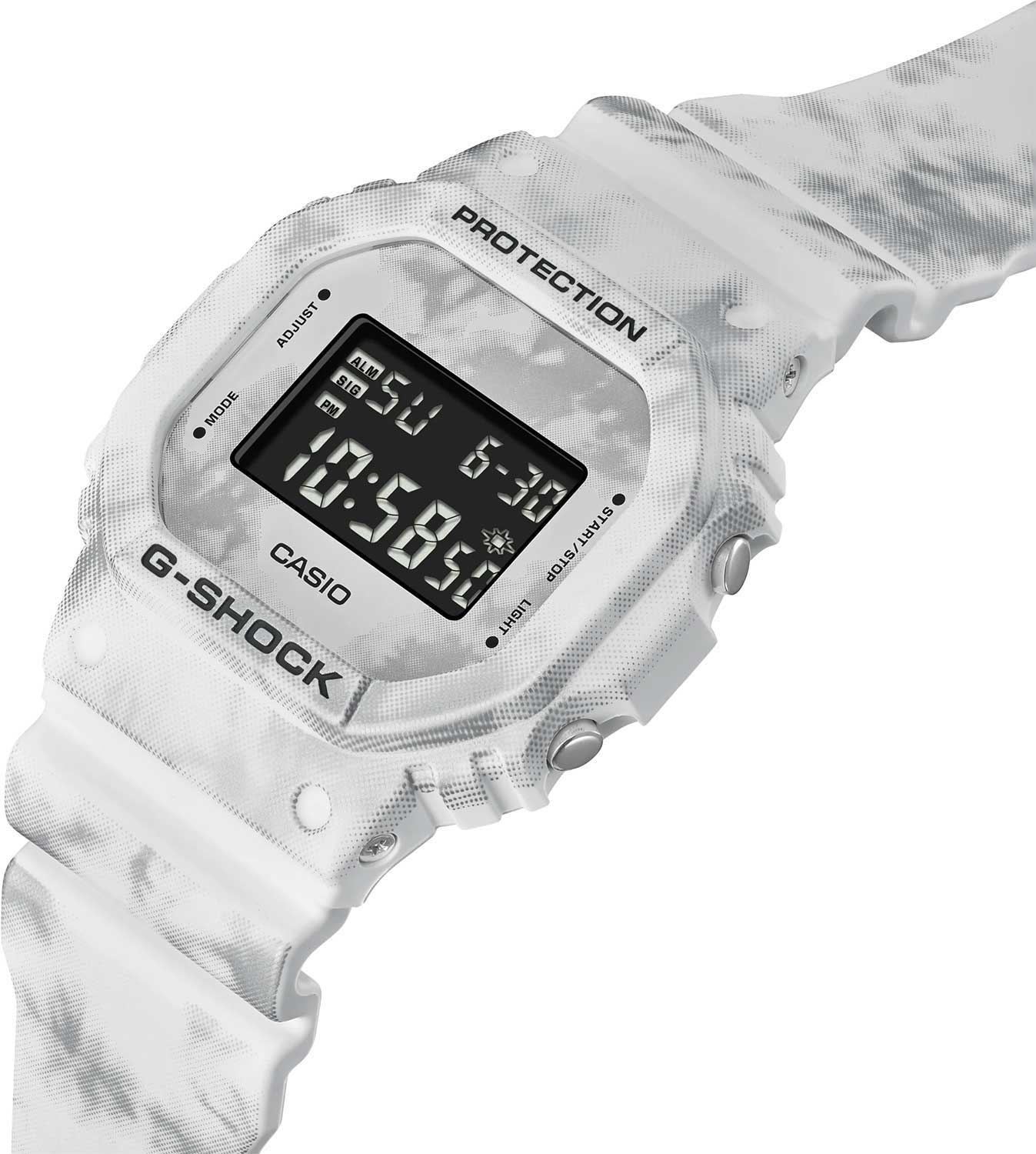 Японские наручные часы Casio G-Shock Frozen Forest DW-5600GC-7ER c хронографомХронографФункция позволяет измерять отрезки времени с особой точностью: часы, минуты, секунды. Верным признаком хронографа является наличие на циферблате 3 дополнительных окошек-счётчиков., кварцевый механизм с высокой точностью. Класс водозащиты: 200 метров, позволит плавать, нырять и заниматься другими водными видами спорта. Корпус часов изготовлен из пластика. Минеральное стеклоМинеральное стеклоМинеральное стекло представляет собой искусственно выращенный минерал кварца. Такое стекло отличается особой устойчивостью к повреждениям и царапинам. Уступает по некоторым качествам сапфировому стеклу. устойчивое к мелким механическим повреждениям. Ударопрочный корпусУдаропрочный корпусМеханизм заключён в корпус, выполненный из современных материалов, устойчивых к ударам, механическим повреждениям и падению с высоты: инновационный пластик, карбон, нержавеющая сталь, титан. защищает механизм от ударов и вибрации. Электролюминесцентная подсветкаЭлектролюминесцентная подсветкаЭлектролюминесцентная панель устанавливается под ЖК-экраном часов, при нажатии кнопки электричество преобразуется в свет за счёт подачи напряжения на атомы фосфора, такой тип подсветки позволяет освещать весь циферблат. освещает весь циферблат, после отпускания кнопки свечение продолжается еще некоторое время. Световая индикация сигнала. Цвет подсветки: сине-зеленый. 12-ти и 24-х часовой формат времени. СекундомерСекундомерСекундоме́р — прибор, способный измерять интервалы времени с точностью до долей секунды. с двумя точностями показаний: 1/100с (до 1ч) и 1с (после 1ч) и временем измерения 24ч. Сплит-хронографСплит-хронографИспользуется для измерения продолжительности нескольких временных отрезков, начинающихся одновременно, а заканчивающихся в разное время.. ТаймерТаймерОтсчитывает секунды в обратном направлении в заданном интервале времени. обратного отсчета от 1с до 24ч с автоповтором. БудильникБудильникБуди́льник — часы, в заданный момент времени подающие звуковой, световой и/или в редких случаях другой сигнал. с автоповтором. Типы сигналов: ежедневный, ежемесячный, каждый день определенного месяца, на определенную дату. Батарейка рассчитана на 2 года. Водонепроницаемость в соответствии с ISO 22810. Ремешок из полимерного материала с классической застежкой.