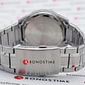 Аксессуар с серебристым циферблатом имеет черные элементы дизайна, общее оформление навеяно автомобильной тематикой. Секундная стрелка с красным наконечником улучшает читаемость показателей. Надёжные часы с закручивающейся задней крышкой оснащены кварцевым механизмом с точностью хода +/- 30 секунд в месяц. Корпус и браслет из хирургической стали 316L. БезельБезельВнешний ободок, закрепляющий стекло. В спортивных часах так называется поворотное кольцо с делениями на циферблате, выполняет роль таймера – замеряет отрезки времени на шкале. Неподвижный безель – элемент декора. Однонаправленно вращающийся безель на дайверских часах позволяет фиксировать моменты погружения и выныривания на поверхность. с синим IP-покрытиемIP-покрытиеМетод ионного напыления. Демонстрирует повышенную устойчивость к истиранию, окислению и химическим веществам. Под воздействием высокого давления и температуры около 1500°C молекулы металла надёжно соединяются с частицами корпуса часов.. Водостойкость до 10 бар. Люминесцентная подсветкаЛюминесцентное покрытиеПозволяет считывать показания времени в темноте. Производители наносят на стрелки, часовые индексы, безель или поверхность циферблата светонакопительный состав, дающий холодное свечение. Neobrite. ХронографХронографФункция позволяет измерять отрезки времени с особой точностью: часы, минуты, секунды. Верным признаком хронографа является наличие на циферблате 3 дополнительных окошек-счётчиков., секундомер, апертура даты. Габариты: 43,8х48,5мм, толщина 12,1мм, вес 144г