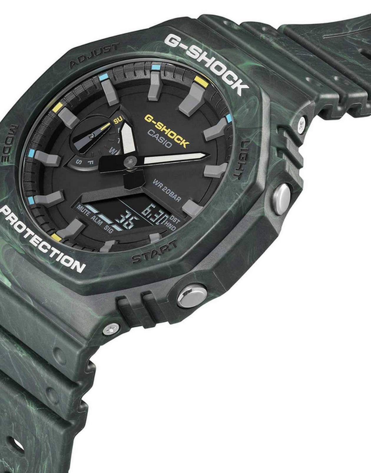 Японские наручные мужские часы Casio G-SHOCK GA-2100FR-3AER с хронографом Casio G-Shock GA-2100FR-3A, электронный механизм с высокой точностью. Класс водозащиты: 200 метров, позволит плавать, нырять и заниматься другими водными видами спорта. Корпус часов изготовлен из пластика, цвета.