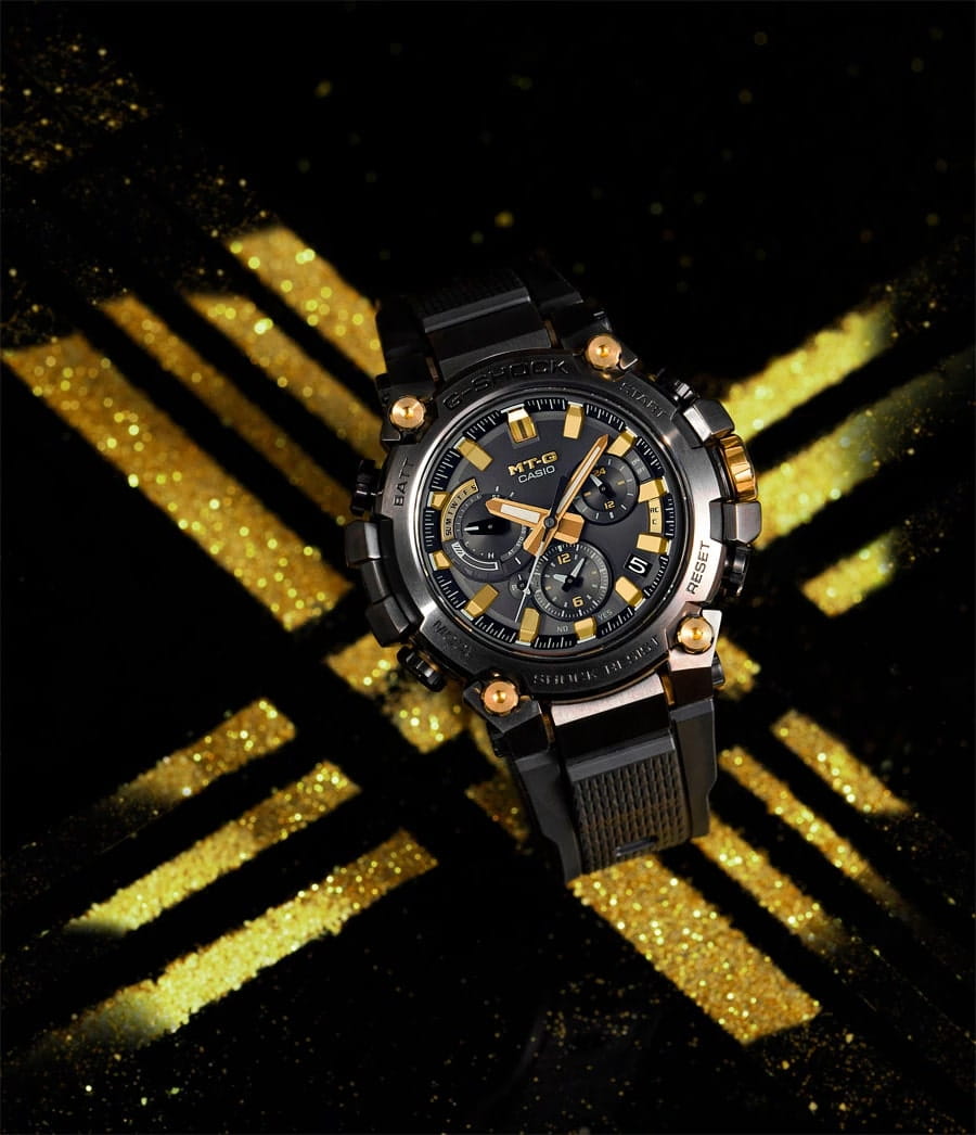 Премиальные японские мужские мультифункциональные часы Casio G-Shock MTG-B3000BDE-1A. Корпус с общим размером 51,9 x 50,9 x 12,1 мм. Благодаря еще более совершенной конструкции Dual Core Guard часы MTG-B3000 защищают модуль в корпусе из армированной карбоном смолы. Значительно тоньше своих предшественников. MTG-B3000BDE-1A оснащены модулем «5672», самый тонкий из когда-либо существовавших хронографов G-Shock на солнечной батарее по технологии Tough SolarTough SolarТехнология основана на подзарядке аккумулятора от источника солнечного света, специальная панель улавливает солнечные лучи и преобразует их в энергию для работы часов. Достаточно пары минут нахождения на солнце для функционирования часов в течении суток..