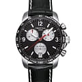 Элегантный хронографХронографФункция позволяет измерять отрезки времени с особой точностью: часы, минуты, секунды. Верным признаком хронографа является наличие на циферблате 3 дополнительных окошек-счётчиков. с ремешком из натуральной кожи идеально завершит образ делового мужчины. Швейцарский кварцевый калибр ETA G10.211 измеряет время с высокой точностью хода. Стрелки имеют люминесцентное покрытиеЛюминесцентное покрытиеПозволяет считывать показания времени в темноте. Производители наносят на стрелки, часовые индексы, безель или поверхность циферблата светонакопительный состав, дающий холодное свечение.. Функции: секундомер, EOLEOLПредставляет собой систему, уведомляющую владельца часов о необходимости замены элемента питания. За 2 недели до полного разряда батарейки секундная стрелка перестаёт ходить чётко и начинает перепрыгивать на 3-4 деления., дата, тахиметрТахиметрРазмеченная шкала, располагается на ободке или безеле часов. Тахиметр позволяет рассчитать скорость на определённом участке пути, расстояние измеряется в километрах или милях..