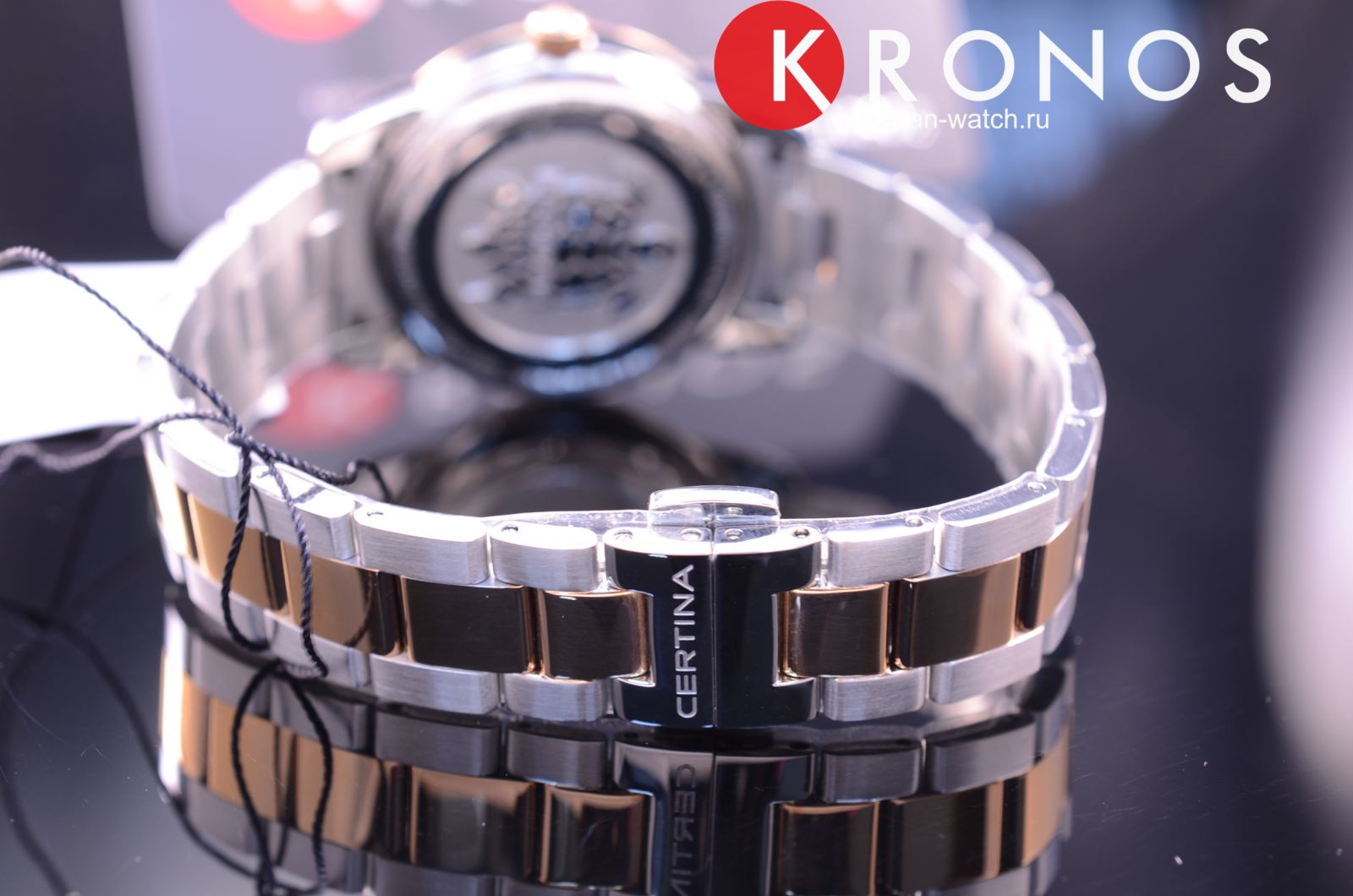 Аксессуар в классическом исполнении отличается серебристой цветовой палитрой. Тонкий изящный браслет из нержавеющей стали 316L надёжно крепится на запястье, предотвращает случайное расстёгивание и потерю изделия. Высокая точность хода обеспечивается швейцарским кварцевым механизмом ETA F06.411 Precidrive™Precidrive™Инновационный кварцевый механизм Certina. Часы, оснащённые этим швейцарским калибром, приравниваются к точности к сертифицированным хронометрам, точность хода составляет +/-10 секунд в год.. Стекло из сапфира с антибликовым покрытием. PVD-покрытиеPVDУльтратонкое покрытие наносится в технике вакуумного напыления, сочетает в себе нитрид титана особой прочности со слоем золота или оксида хрома. Несёт в себе декоративную или защитную функцию. оттенка розового золота. Степень водостойкости WR 100. Концепция DS ConceptDS ConceptDouble Security Concept, обозначает двойную надёжность и безупречную точность часов Certina. Двойная система защиты подразумевает обеспечение максимальной устойчивости к ударам и высоких показателей водонепроницаемости.. Апертура даты, функция EOLEOLПредставляет собой систему, уведомляющую владельца часов о необходимости замены элемента питания. За 2 недели до полного разряда батарейки секундная стрелка перестаёт ходить чётко и начинает перепрыгивать на 3-4 деления.. Диаметр корпуса: 33 мм.