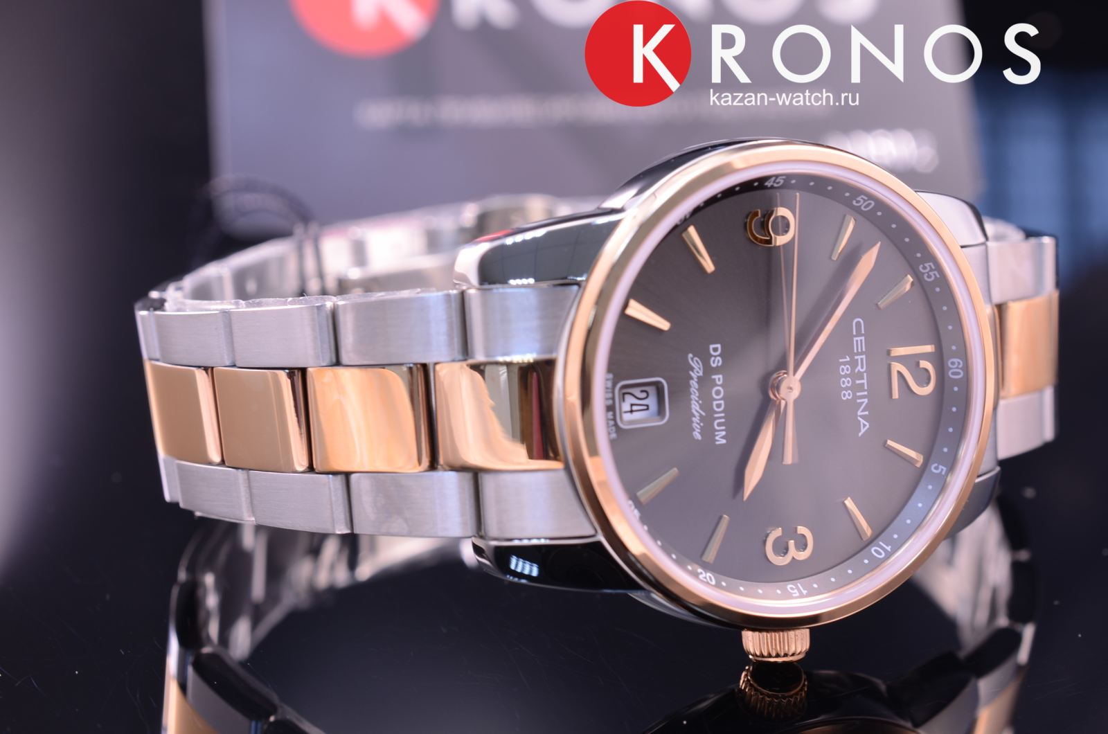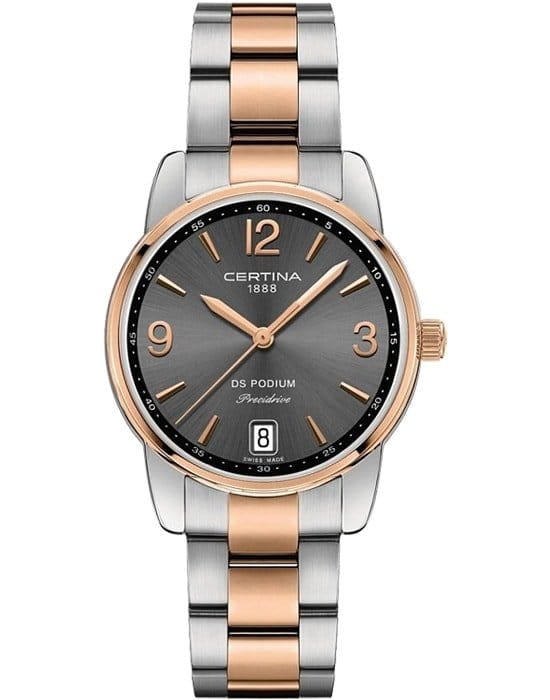 Модель с изысканной формой корпуса умело комбинирует элегантность и спортивный стиль, претворяя в жизнь универсальные часы для делового, повседневного или вечернего наряда. Они оснащены швейцарским кварцевым калибром ETA F03.411 Precidrive™Precidrive™Инновационный кварцевый механизм Certina. Часы, оснащённые этим швейцарским калибром, приравниваются к точности к сертифицированным хронометрам, точность хода составляет +/-10 секунд в год., обеспечивающим абсолютную точность показателей. Сапфировое стекло с односторонним антибликовым покрытием. Водостойкость 100 метров. Концепция DS ConceptDS ConceptDouble Security Concept, обозначает двойную надёжность и безупречную точность часов Certina. Двойная система защиты подразумевает обеспечение максимальной устойчивости к ударам и высоких показателей водонепроницаемости.. Нержавеющая сталь с частичным PVD-покрытиемPVDУльтратонкое покрытие наносится в технике вакуумного напыления, сочетает в себе нитрид титана особой прочности со слоем золота или оксида хрома. Несёт в себе декоративную или защитную функцию. цвета розового золота. . Апертура даты, функция EOLEOLПредставляет собой систему, уведомляющую владельца часов о необходимости замены элемента питания. За 2 недели до полного разряда батарейки секундная стрелка перестаёт ходить чётко и начинает перепрыгивать на 3-4 деления.. Диаметр корпуса: 33 мм.