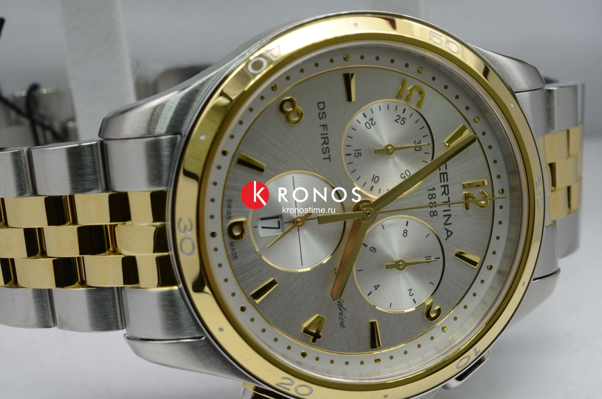Модель работает за счёт швейцарского кварцевого калибра ETA G15.212 Precidrive™Precidrive™Инновационный кварцевый механизм Certina. Часы, оснащённые этим швейцарским калибром, приравниваются к точности к сертифицированным хронометрам, точность хода составляет +/-10 секунд в год.. Ударопрочный корпусУдаропрочный корпусМеханизм заключён в корпус, выполненный из современных материалов, устойчивых к ударам, механическим повреждениям и падению с высоты: инновационный пластик, карбон, нержавеющая сталь, титан. и браслет изготовлены из стали 316L с золотистым PVD-покрытиемPVDУльтратонкое покрытие наносится в технике вакуумного напыления, сочетает в себе нитрид титана особой прочности со слоем золота или оксида хрома. Несёт в себе декоративную или защитную функцию.. Часы оснащены секундомером, календарём, индикатором EOLEOLПредставляет собой систему, уведомляющую владельца часов о необходимости замены элемента питания. За 2 недели до полного разряда батарейки секундная стрелка перестаёт ходить чётко и начинает перепрыгивать на 3-4 деления.. Стекло из сапфира имеет антибликовое покрытие.