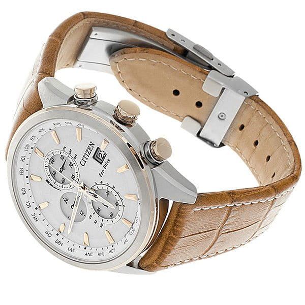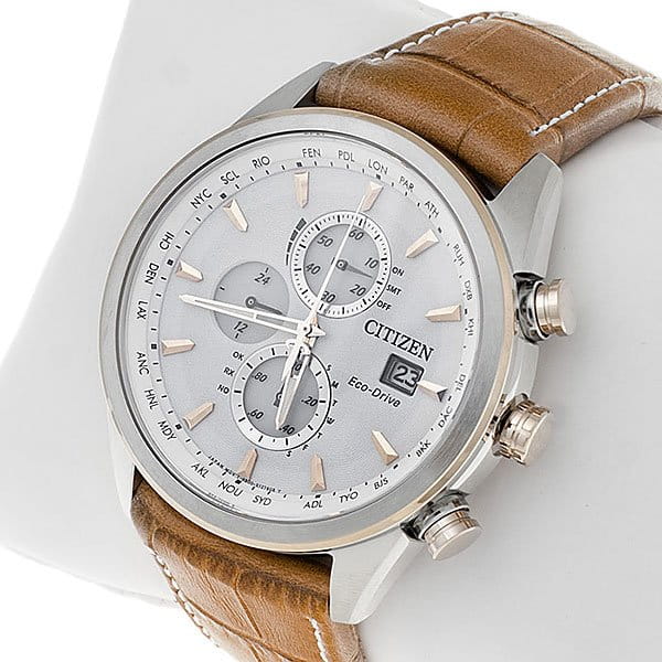 Хронограф с устройством вечного календаря и системой коррекции времени по радиосигналам работающий от аккумуляторной системы Eco-Drive.