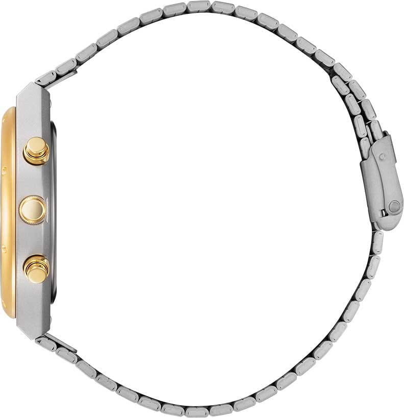 Японские наручные часы Citizen AT2544-64E с хронографомХронографФункция позволяет измерять отрезки времени с особой точностью: часы, минуты, секунды. Верным признаком хронографа является наличие на циферблате 3 дополнительных окошек-счётчиков., выполнены в современном стиле и оснащены функционалом, который идеально подойдет для динамичного ритма жизни. Корпус диаметром 38 мм изготовлен из прочной нержавеющей стали, а на безельБезельВнешний ободок, закрепляющий стекло. В спортивных часах так называется поворотное кольцо с делениями на циферблате, выполняет роль таймера – замеряет отрезки времени на шкале. Неподвижный безель – элемент декора. Однонаправленно вращающийся безель на дайверских часах позволяет фиксировать моменты погружения и выныривания на поверхность. нанесено золотистое IP-покрытиеIP-покрытиеМетод ионного напыления. Демонстрирует повышенную устойчивость к истиранию, окислению и химическим веществам. Под воздействием высокого давления и температуры около 1500°C молекулы металла надёжно соединяются с частицами корпуса часов., что придает модели элегантный внешний вид и дополнительную устойчивость к царапинам. Черный циферблат украшен лаконичными метками в виде штрихов и дополнен отдельным индикатором секунд, а также окошком даты, удобно расположенным в районе 4 часов. Стрелки и часовые метки с люминесцентным покрытиемЛюминесцентное покрытиеПозволяет считывать показания времени в темноте. Производители наносят на стрелки, часовые индексы, безель или поверхность циферблата светонакопительный состав, дающий холодное свечение. обеспечивают отличную читаемость даже в темноте. Часы оснащены высокоточным кварцевым механизмом Citizen H500, который обеспечивает стабильную работу всех функций. Среди них —хронографХронографФункция позволяет измерять отрезки времени с особой точностью: часы, минуты, секунды. Верным признаком хронографа является наличие на циферблате 3 дополнительных окошек-счётчиков. с секундомеромСекундомерСекундоме́р — прибор, способный измерять интервалы времени с точностью до долей секунды., измеряющим время с точностью до одной секунды в течение 60 минут, а также тахиметрТахиметрРазмеченная шкала, располагается на ободке или безеле часов. Тахиметр позволяет рассчитать скорость на определённом участке пути, расстояние измеряется в километрах или милях. для определения средней скорости. Предусмотрены 12- и 24-часовые форматы отображения времени. Модель работает на инновационной системе Eco-Drive, получая энергию от любого источника света и не требуя замены батарейки, запас хода составляет до 150 дней. Встроенные функции индикации заряда и предотвращения перезарядки делают эксплуатацию максимально удобной. Минеральное стеклоМинеральное стеклоМинеральное стекло представляет собой искусственно выращенный минерал кварца. Такое стекло отличается особой устойчивостью к повреждениям и царапинам. Уступает по некоторым качествам сапфировому стеклу. защищает циферблат от случайных повреждений, а стальной браслет с раскладным замкомРаскладной замокДанный вариант застежки используется только на часах с металлическим браслетом. Отличительная особенность такого крепления в том, что длина браслета становится универсальной и вы можете самостоятельно отрегулировать нужный вам размер – засте