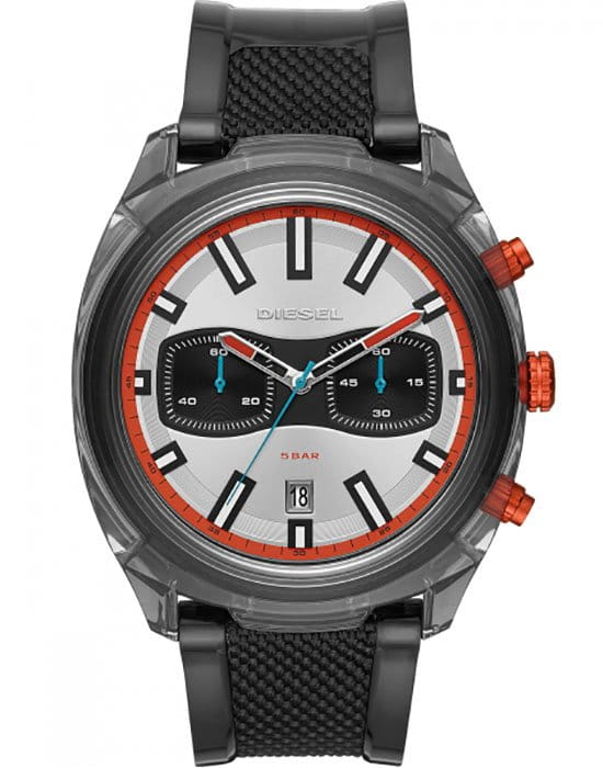 Наручные часы Diesel отражают динамику спортивного дизайна в сочетании с классическими элементами, броский вариант позволит гармонично подчеркнуть индивидуальные черты вашего образа. Модель привлекает необычным исполнением, ведь каждый желает выглядеть стильно и выделяться из толпы. Массивный корпус идеально смотрится как на широком, так и на узком запястье, сложные детали добавляют футуристичного подтекста. Такие часы больше подойдут для дополнения спортивного или повседневного стиля одежды, станут лучшим подарком для любителей оригинальности и отхождения от привычных деталей. Аксессуар надолго сохранит свой внешний облик в первоначальном виде благодаря надёжным материалам и прочному минеральному стеклу, которое препятствует появлению царапин.