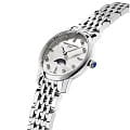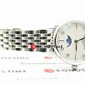 Циферблат из натурального перламутра. Инкрустация 8 бриллиантов общим весом 0.02 карата в качестве часовых индексов.