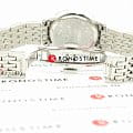 Швейцарский кварцевый механизм на 5 камнях. Погрешность точности хода не более -10/+20 сек. в сутки. Срок службы элемента питания составляет 60 месяцев. Функции: центральные часовая и минутная стрелки, индикация фазы Луны в фигурной апертуре.