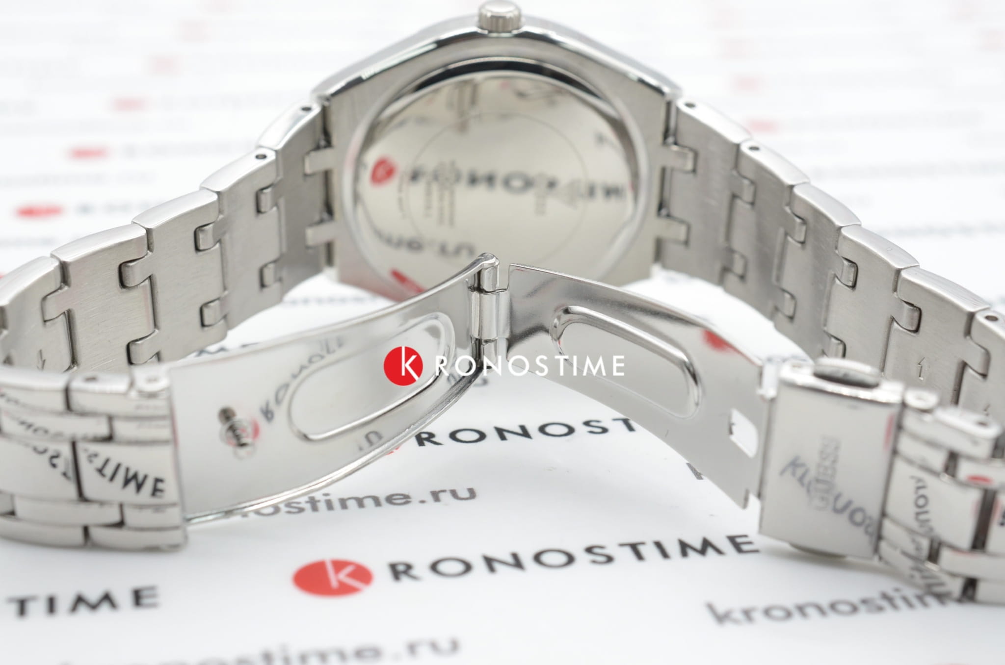 Стальной корпус круглой формы. Отсчет данных ведут три элегантные стрелки. Прочный браслет с раскладывающейся застёжкойРаскладная застёжкаТакой тип застёжки используется только на браслетах из металла. Она никогда не раскрывается полностью, происходит разделение на 2 и более частей. Раскладывающая застёжка снизит вероятность потери часов к минимуму. будет надежно сидеть на запястье. Элегантный безельБезельВнешний ободок, закрепляющий стекло. В спортивных часах так называется поворотное кольцо с делениями на циферблате, выполняет роль таймера – замеряет отрезки времени на шкале. Неподвижный безель – элемент декора. Однонаправленно вращающийся безель на дайверских часах позволяет фиксировать моменты погружения и выныривания на поверхность. с ослепительными кристаллами Swarovski. Вставлено минеральное стекло с закалкой. Кварцевый механизм. Водонепроницаемость составляют 30 WR.