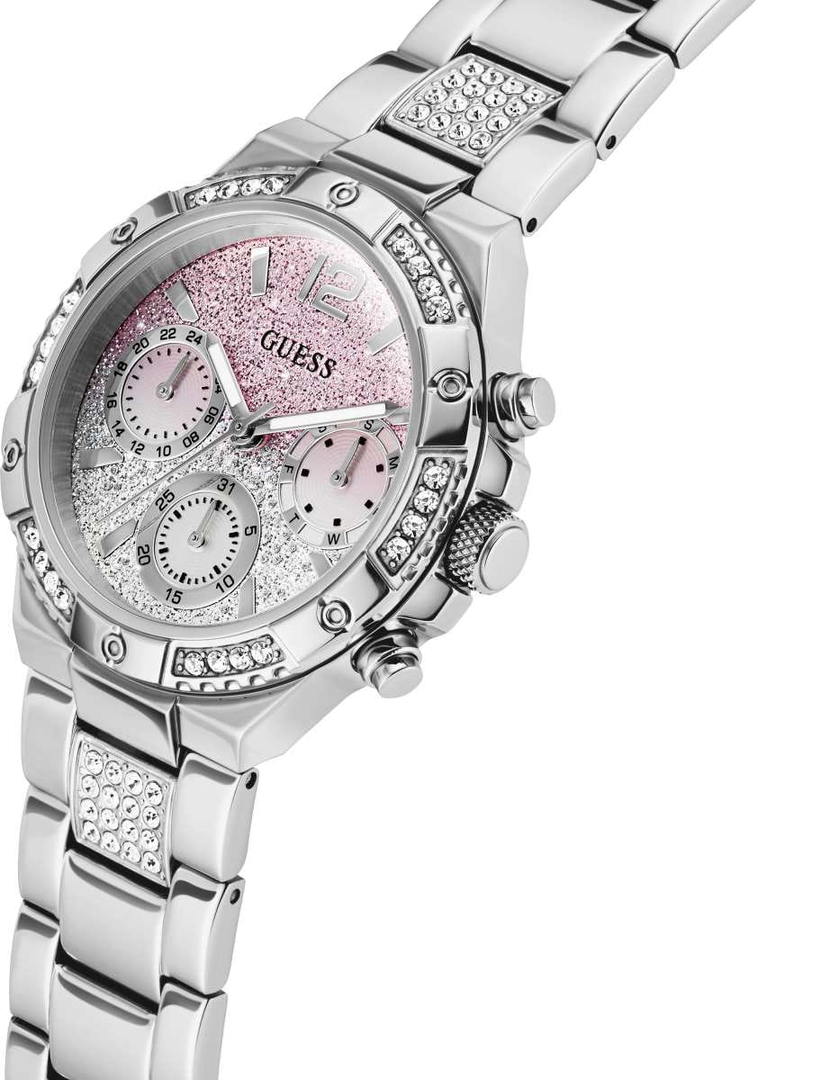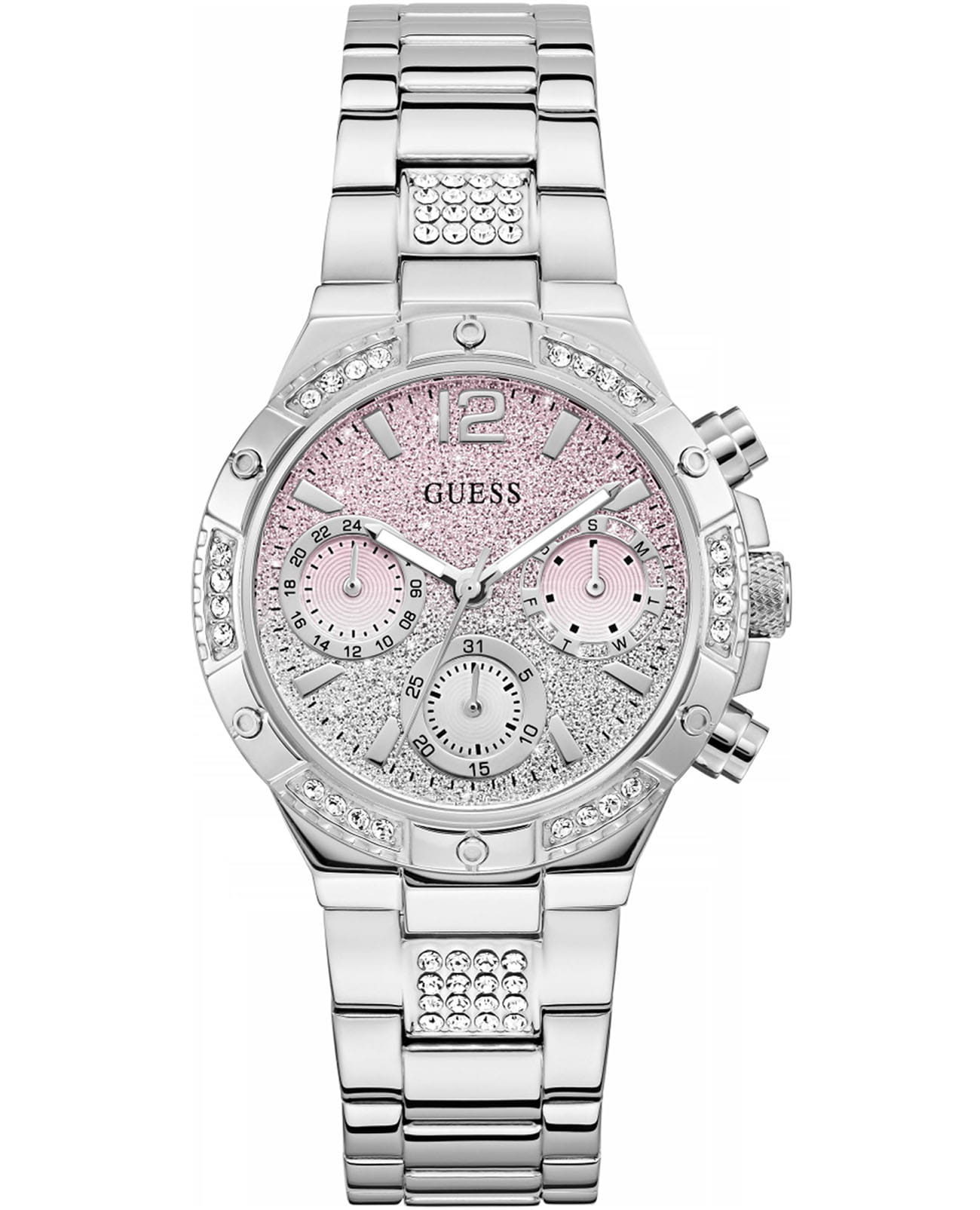 Элегантные женские наручные часы Guess Trend Harlow GW0950L1 сочетают в себе стиль и функциональность. Эти часы оснащены точным кварцевым механизмом, что гарантирует надежность и долговечность. Корпус часов выполнен из прочной нержавеющей стали диаметром 38 мм. БезельБезельВнешний ободок, закрепляющий стекло. В спортивных часах так называется поворотное кольцо с делениями на циферблате, выполняет роль таймера – замеряет отрезки времени на шкале. Неподвижный безель – элемент декора. Однонаправленно вращающийся безель на дайверских часах позволяет фиксировать моменты погружения и выныривания на поверхность. и браслет украшены кристаллами, придающими им роскошный вид. Изысканный циферблат добавляет изделию утонченности и особого шарма. Часы оснащены стальным браслетом с раскладной застежкойРаскладная застёжкаТакой тип застёжки используется только на браслетах из металла. Она никогда не раскрывается полностью, происходит разделение на 2 и более частей. Раскладывающая застёжка снизит вероятность потери часов к минимуму., который обеспечивает комфортное прилегание к запястью и надежную фиксацию. Люминесцентное покрытиеЛюминесцентное покрытиеПозволяет считывать показания времени в темноте. Производители наносят на стрелки, часовые индексы, безель или поверхность циферблата светонакопительный состав, дающий холодное свечение. на стрелках обеспечивает отличную видимость в темноте. Минеральное стеклоМинеральное стеклоМинеральное стекло представляет собой искусственно выращенный минерал кварца. Такое стекло отличается особой устойчивостью к повреждениям и царапинам. Уступает по некоторым качествам сапфировому стеклу. защищает циферблат от царапин и повреждений, сохраняя его безупречный вид. Водозащита 50WR гарантирует защиту от случайных брызг и дождя, что делает эти часы практичным аксессуаром для повседневной жизни.