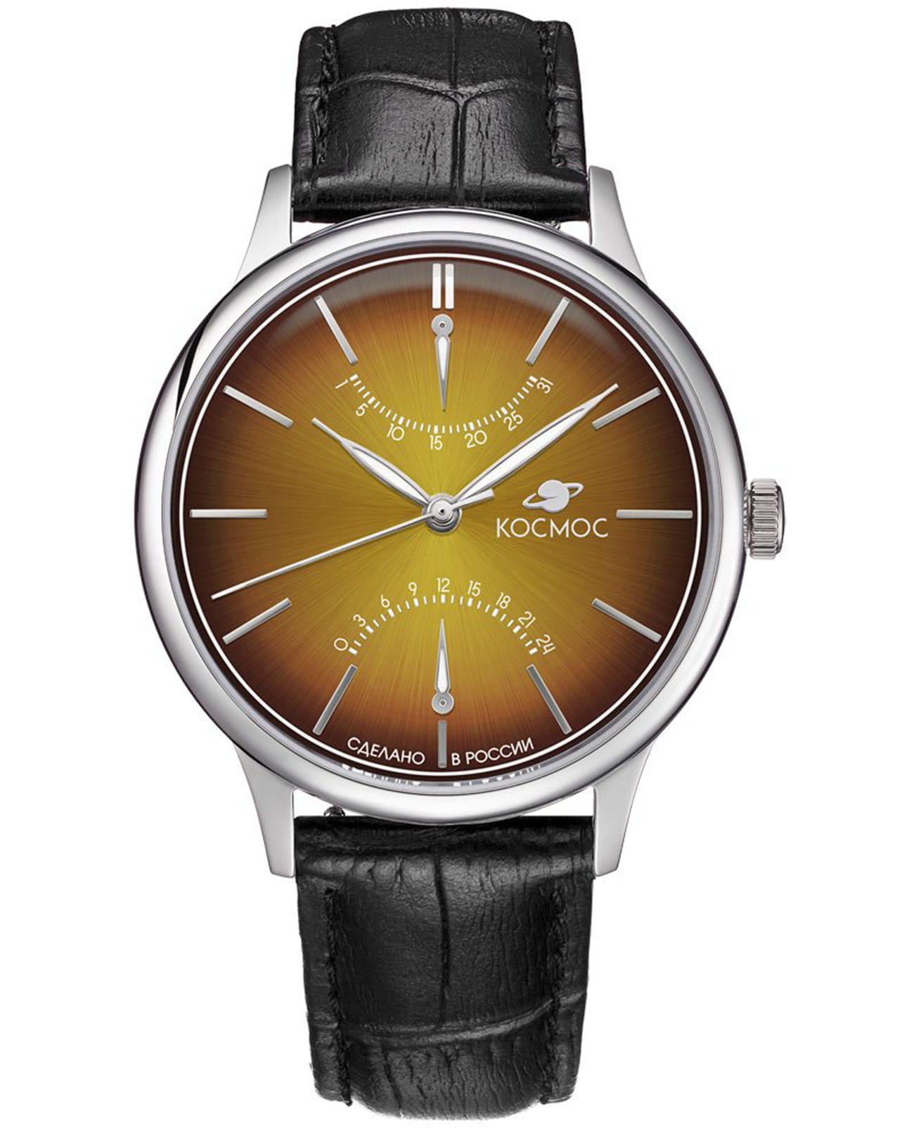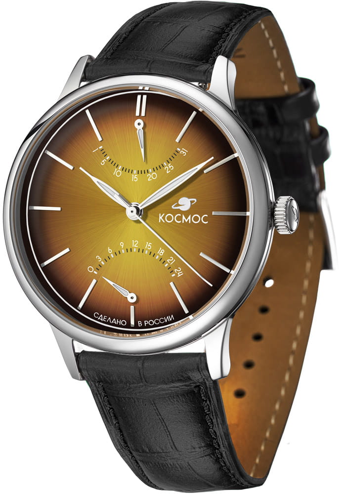 Мужские наручные часы Космос Космопорт K 058.11.37 — это сочетание традиций часового искусства 60-70-х годов и футуристического дизайна, вдохновленного космическими исследованиями. Они не только служат напоминанием о прошлом, но и побуждают задуматься о будущем, позволяя наслаждаться качеством и смыслом, вложенными в каждую деталь. Полированный корпус часов выполнен в виде силуэта летающей тарелки благодаря выпуклым формам стекла и нижней части корпуса. Стальные ушки, которые напоминают опоры летающей тарелки, завершает общий образ. На задней крышке часов выгравирован фантазийный сюжет – космическая станция будущего. Циферблат желтого цвета выполнен в ретро стиле с закруглёнными краями, что требует применения сложной технологии производства, характерной для часов прошлых лет. Кончик секундной стрелки повторяет эту форму, а на выпуклом градиентном циферблате выполнена шлифовка, напоминающая солнечные лучи. Индексы, изготовленные вручную и закрепленные на двух штифтах, добавляют изысканности. Также присутствуют ретроградные индикаторы даты и второго времени (24 часа), которые возвращаются в исходное положение одним движением. Люминесцентное покрытиеЛюминесцентное покрытиеПозволяет считывать показания времени в темноте. Производители наносят на стрелки, часовые индексы, безель или поверхность циферблата светонакопительный состав, дающий холодное свечение. на часовой и минутной стрелках, а также на стрелках ретроградных индикаторов и окантовке циферблата создает эффект светящегося ореола в темноте. Форма минерального стеклаМинеральное стеклоМинеральное стекло представляет собой искусственно выращенный минерал кварца. Такое стекло отличается особой устойчивостью к повреждениям и царапинам. Уступает по некоторым качествам сапфировому стеклу., представляющего собой двояковыпуклую конструкцию, тщательно проработана. Такое стекло не искажает изображение на циферблате, потому что внутренняя поверхность остаётся плоской, создавая эффект линзы. Производственный процесс для достижения двух параллельно изогнутых поверхностей очень сложен, и требуется высокая точность, чтобы избежать повреждения стекла. Ремешок из черной натуральной кожи оснащён креплениями, которые позволяют легко снимать и надевать его без использования дополнительных инструментов. Заводная головка, застежка и ремешок украшены фирменным логотипом, что подчеркивает индивидуальность и стиль этих часов.