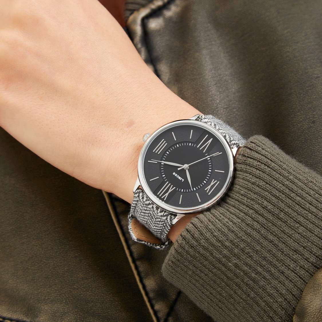 Женские кварцевые часы Lincor 4047L-25 зимний уют на запястье. Корпус 40 мм из нержавеющей стали с IP-покрытиемIP-покрытиеМетод ионного напыления. Демонстрирует повышенную устойчивость к истиранию, окислению и химическим веществам. Под воздействием высокого давления и температуры около 1500°C молекулы металла надёжно соединяются с частицами корпуса часов., циферблат с штрихами и римскими цифрами. Механизм швейцарский кварцевый, стекло сапфировоеСапфировое стеклоПрочный и надёжный материал из кристалла сапфира синтетического происхождения, характеризующийся особой твёрдостью и устойчивостью к царапинам и повреждениям., водозащита 30 м. Ремешок тканевый фиксируется на стандартной застёжке. Для тех, кто ценит уютную эстетику, тактильный комфорт и нежный винтаж в холодное время года.