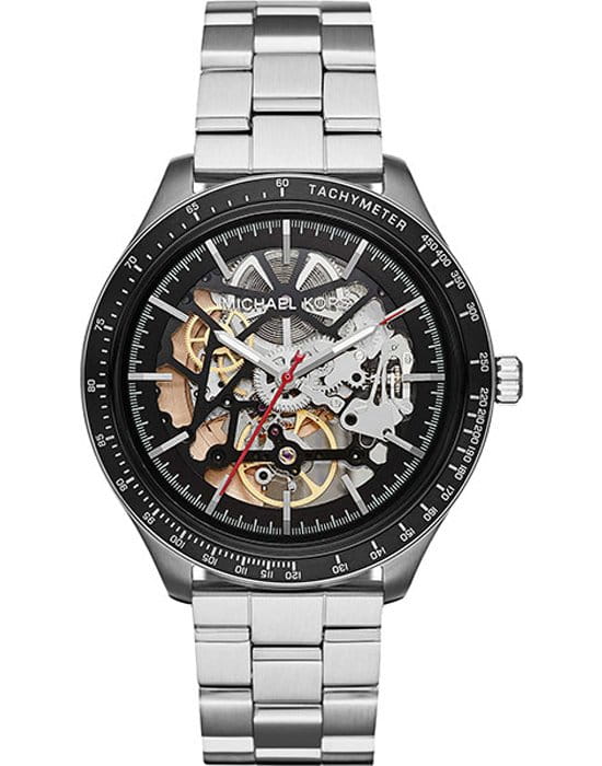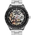 Механические часы с автоподзаводом Скелетонизированный циферблат Водостойкость WR 50 Часы, минуты, секунды, тахиметр Корпус выполнен из нержавеющей стали с частичным PVD покрытием Диаметр корпуса 44 мм Минеральное стекло Прозрачная задняя крышка Браслет выполнен из нержавеющей стали