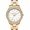 Безупречный дизайн этого аксессуара придаст вашему образу женственности и элегантности. Liliane . Кварцевые стальные часы. Белый перламутровый циферблат с метками в виде штрихов. Стальной безель декорирован россыпью кристаллов. Рифленая заводная головка. Браслет с раскладывающейся застежкой.