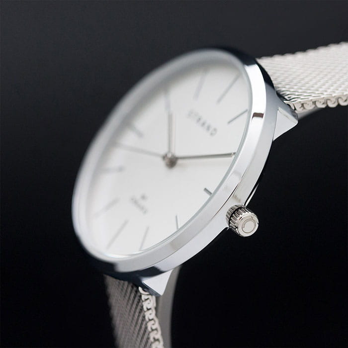 Часы соответствуют минималистичному стремлению, отражая скандинавскую лаконичность. Серебристая расцветка сохраняет актуальность в любом случае. Японский кварцевый калибр Miyota. Батарейка не содержит свинца, ртути. Стальной браслет миланского плетения. Прочное минеральное стекло. Водостойкость WR 30.