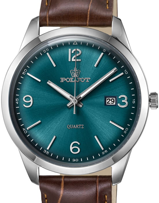Poljot 2315.581210 — элегантные кварцевые мужские часы, объединяющие лаконичный дизайн и повседневную универсальность. Корпус из нержавеющей стали подчёркивает строгость линий и сдержанную эстетику, а глубокий циферблат с аккуратным гильоше и арабскими цифрами создаёт гармоничное визуальное равновесие. Тонкие серебристые стрелки с люминесцентным покрытиемЛюминесцентное покрытиеПозволяет считывать показания времени в темноте. Производители наносят на стрелки, часовые индексы, безель или поверхность циферблата светонакопительный состав, дающий холодное свечение. обеспечивают лёгкость восприятия времени, а окно даты на позиции «3 часа» добавляет практичности. Прочное минеральное стеклоМинеральное стеклоМинеральное стекло представляет собой искусственно выращенный минерал кварца. Такое стекло отличается особой устойчивостью к повреждениям и царапинам. Уступает по некоторым качествам сапфировому стеклу. защищает циферблат от мелких повреждений, а ремешок из натуральной кожи с фактурой крокодила обеспечивает комфорт и элегантное прилегание к запястью. Poljot — это часы для мужчин, ценящих точность, простоту и утончённый повседневный стиль.