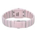 Часы Rado Sintra R13652942, произведение искусства и технологическое чудо, станут прекрасным дополнением к коллекции. Эти швейцарские часы оснащены кварцевым механизмом с указателем даты и тремя стрелками, заключенным в корпус из нержавеющей стали.  Браслет изготовлен из высокотехнологичной керамикиВысокотехнологичная керамикаИнновационный запатентованный Rado материал с гладкой или матовой поверхностью. Керамика за счёт кристаллической структуры обладает повышенной устойчивостью от возникновения царапин. Материал способен принимать температуру тела человека, обеспечивая невероятный комфорт при ношении.. Бриллиантовый циферблат с лентой, украшенный в общей сложности 105 бриллиантами (около 0,3 карата) и 51 розовым сапфиром (около 0,15 карата). Сапфировое стеклоСапфировое стеклоПрочный и надёжный материал из кристалла сапфира синтетического происхождения, характеризующийся особой твёрдостью и устойчивостью к царапинам и повреждениям. устойчивое к появлению царапин, обладающее высокой прозрачностью. Класс водозащиты: 30 метров, позволит защитить корпус от случайных брызг или капель дождя.