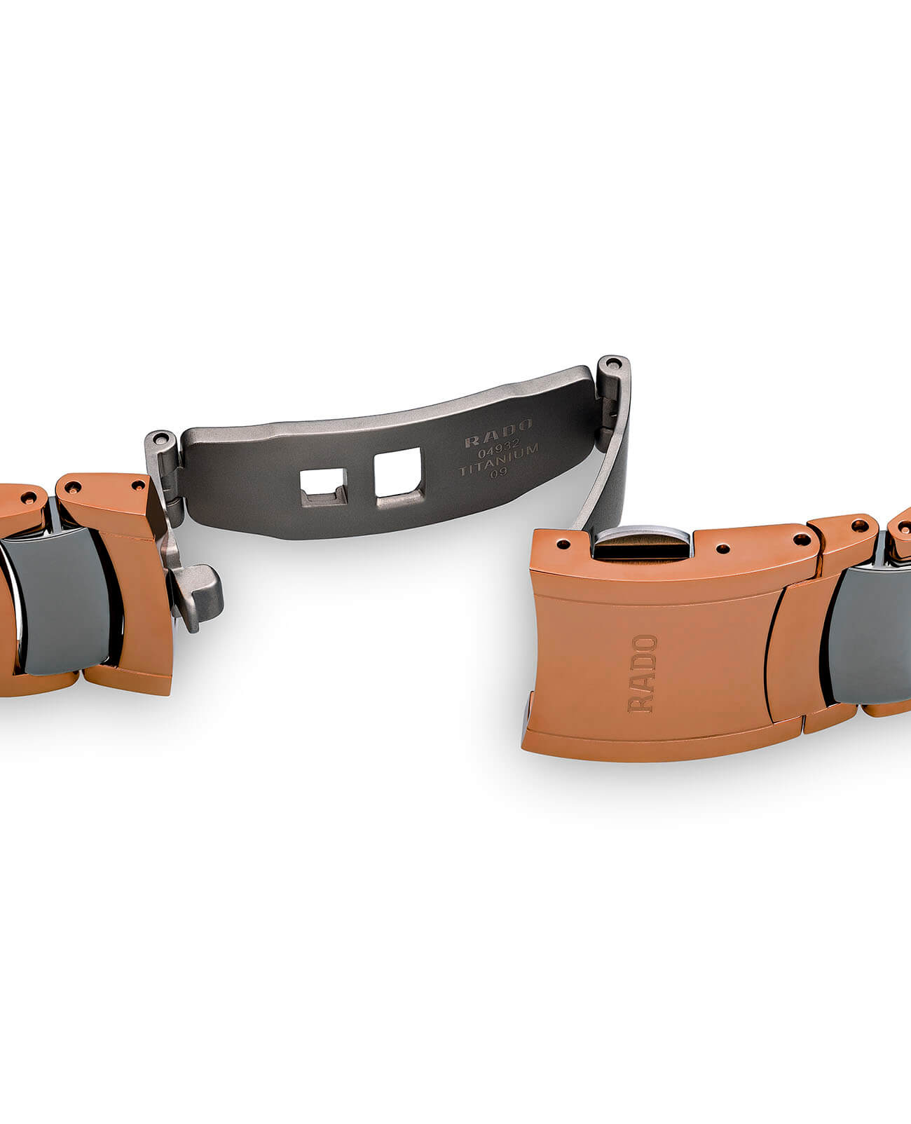 Наручные часы премиальной категории объединяют безупречность стиля и высокую точность хода, позволяя чувствовать себя на высоте в любой ситуации. Циферблат украшен 12 роскошными бриллиантами в 0,045 карат. Привлекательно выглядит сочетание нержавеющей стали 316L с цветным PVD-покрытиемPVDУльтратонкое покрытие наносится в технике вакуумного напыления, сочетает в себе нитрид титана особой прочности со слоем золота или оксида хрома. Несёт в себе декоративную или защитную функцию. и высокотехнологичной керамикиВысокотехнологичная керамикаИнновационный запатентованный Rado материал с гладкой или матовой поверхностью. Керамика за счёт кристаллической структуры обладает повышенной устойчивостью от возникновения царапин. Материал способен принимать температуру тела человека, обеспечивая невероятный комфорт при ношении., такое решение нашло воплощение в браслете. Модель оснащена автоматическим механизмом ETA C07.611, сохраняющим 80-часовой запас хода. Прозрачная задняя крышка. Стекло из сапфира. Индикация числа. Диаметр корпуса: 38 мм.