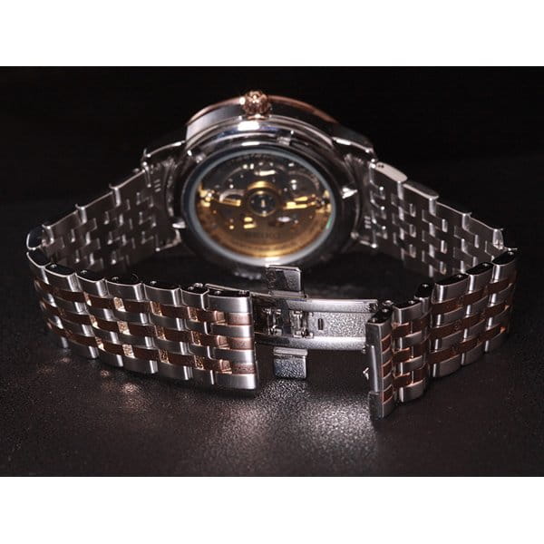 Успешные люди, желающие идти в ногу со временем, выбирают инновационные и надежные часы марки Seiko. Механизм с автоподзаводом, калибр 4R39. В механизме 24 камня, частота 21600 полуколебаний в час. Запас хода 41 час. Возможность ручного завода. 12-ти и 24-х часовой формат времени. Сквозь прозрачное окошко на циферблате можно наблюдать за работой механизма часов. Прозрачная задняя крышка. Корпус и браслет выполнен из высококачественной нержавеющей стали с частичным PVD покрытием. Коричневый циферблат с контрастными римскими цифрами. Сапфировое стекло, устойчиво к царапинам. Водонепрницаемость 100 м.