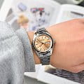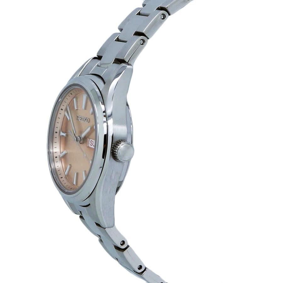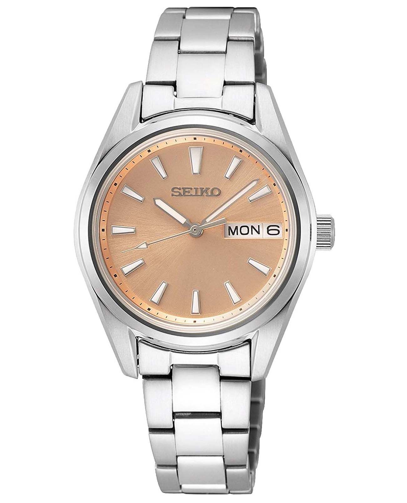 Женские японские часы Seiko CS Dress SUR351P1 c кварцевым механизм с высокой точностью. Сапфировое стеклоСапфировое стеклоПрочный и надёжный материал из кристалла сапфира синтетического происхождения, характеризующийся особой твёрдостью и устойчивостью к царапинам и повреждениям., устойчивое к появлению царапин, обладающее высокой прозрачностью. Класс водозащиты: 100 метров, позволит плавать, нырять и заниматься другими водными видами спорта. Корпус и браслет часов изготовлен из стали. Окошко даты и дня недели находится в положении 3 часа. Браслет с раскладной застёжкойРаскладная застёжкаТакой тип застёжки используется только на браслетах из металла. Она никогда не раскрывается полностью, происходит разделение на 2 и более частей. Раскладывающая застёжка снизит вероятность потери часов к минимуму.. Стрелки и метки с люминесцентным покрытиемЛюминесцентное покрытиеПозволяет считывать показания времени в темноте. Производители наносят на стрелки, часовые индексы, безель или поверхность циферблата светонакопительный состав, дающий холодное свечение. LumiBrite.